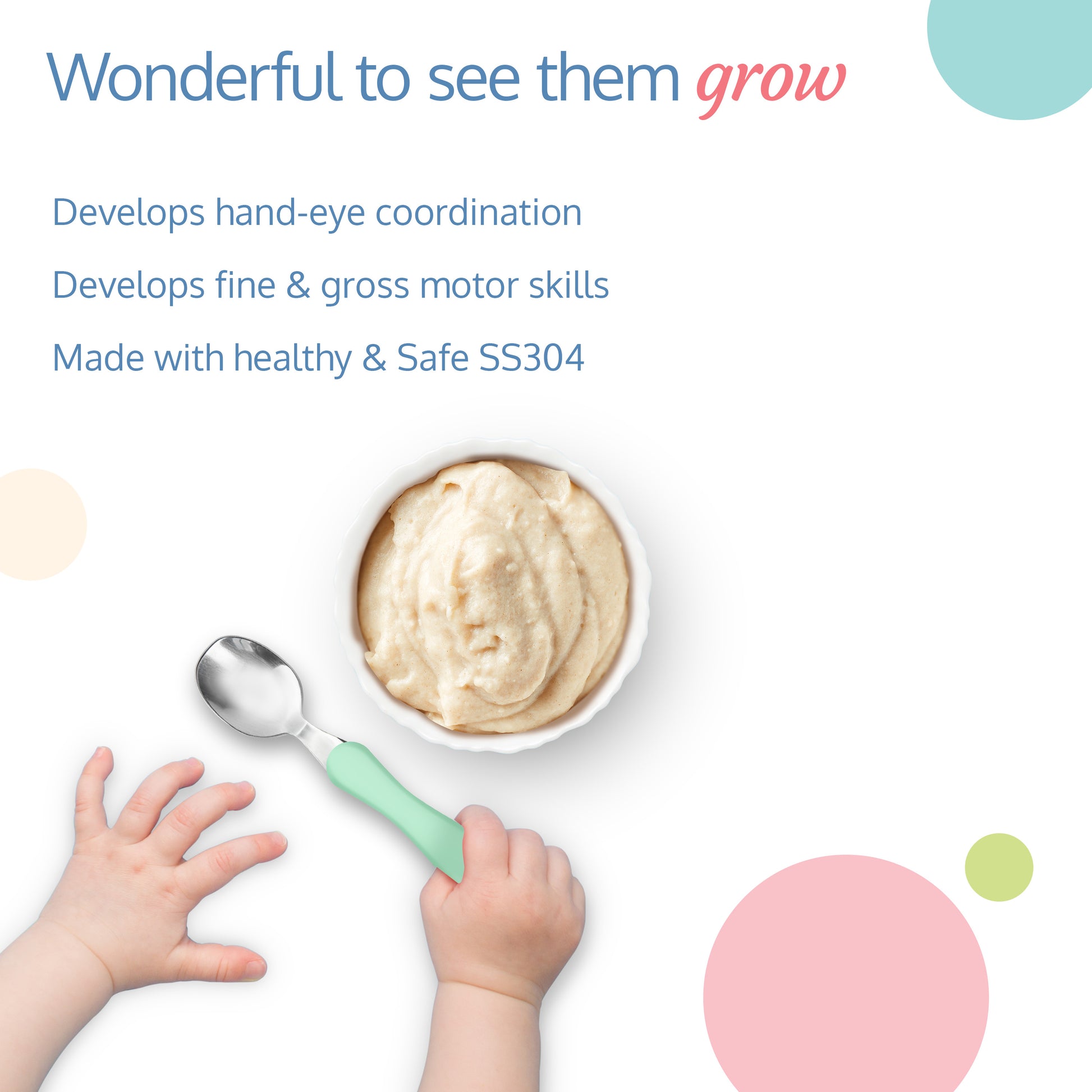 Premium Stainless Steel Baby Spoon & Fork Set for Baby Feeding, Stainless Steel Spoon and Fork Set, Food Grade PP Spoon, BPA Free Feeding Spoon for Kids of 12+ Months (Light Green)