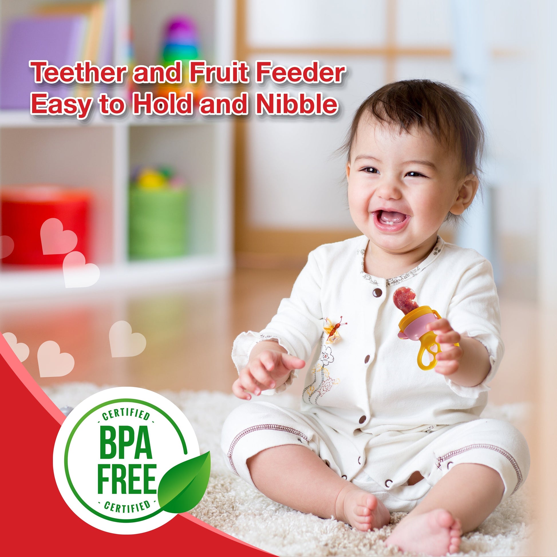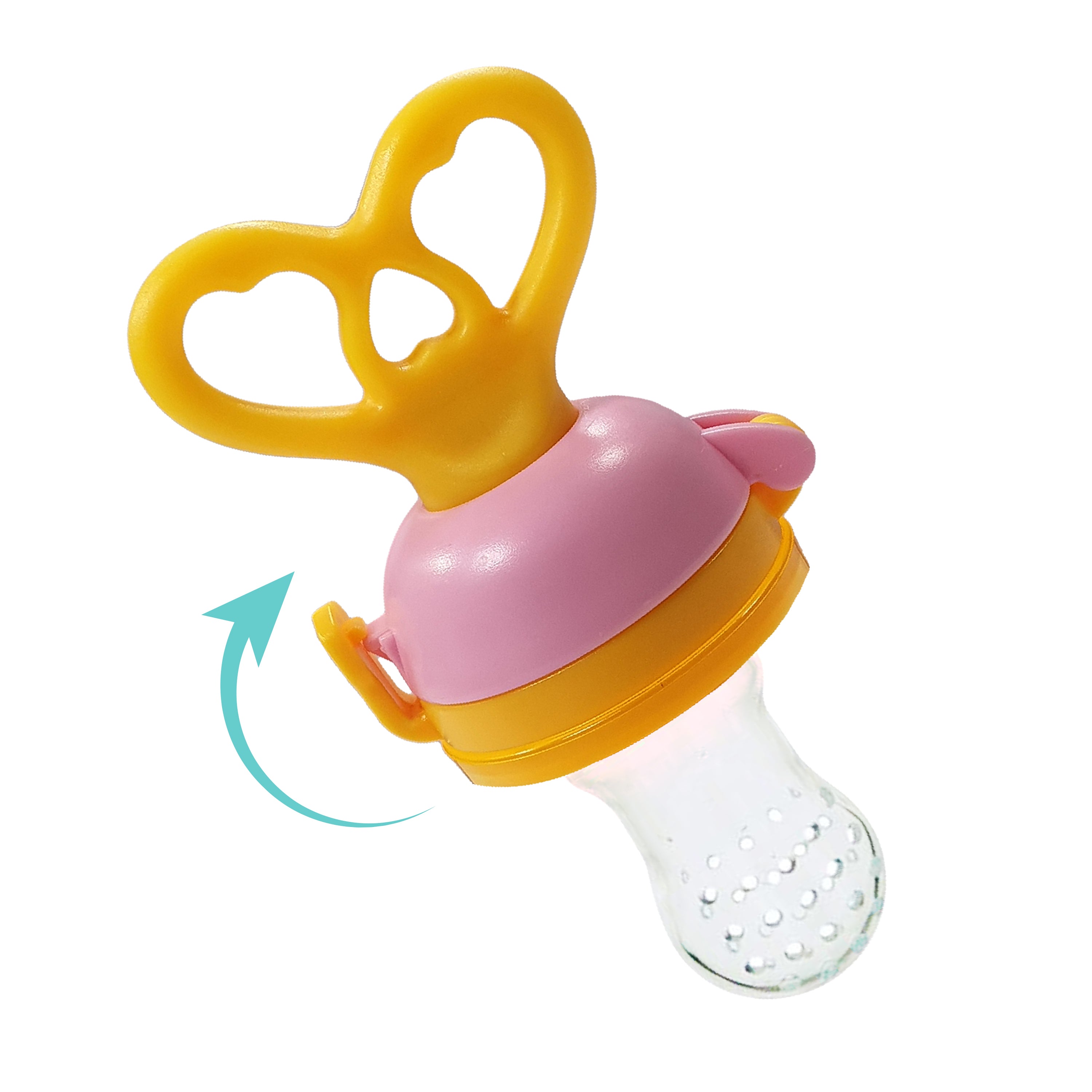Silicone Food/Fruit Nibbler with Extra Mesh, Heartfills Yellow & Pink, BPA Free