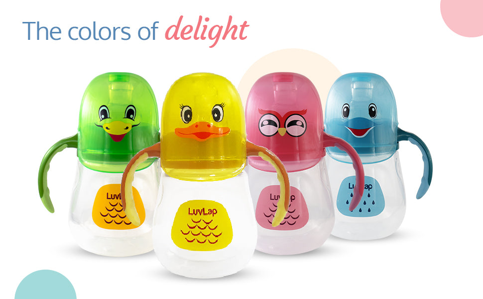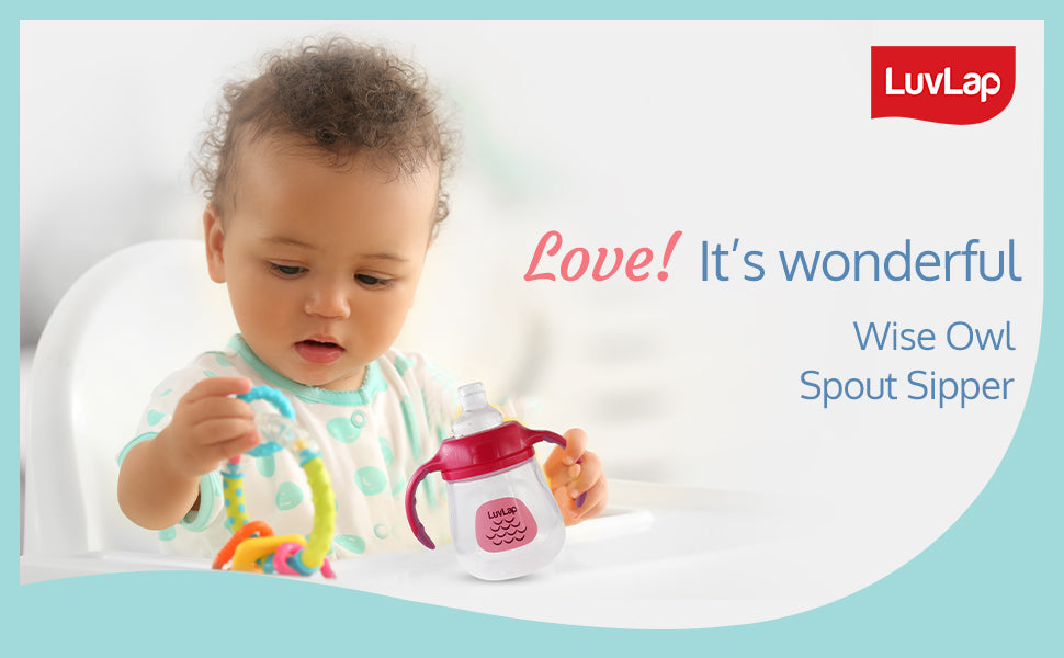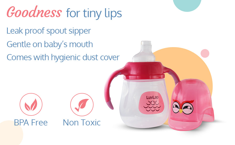LuvLap Wise Owl Spout sippers are gentle on baby's teeth Built in touch flow valve makes the sipper spill free and Enables baby led drinking. The Sipper is ergonomically designed for a better grip.