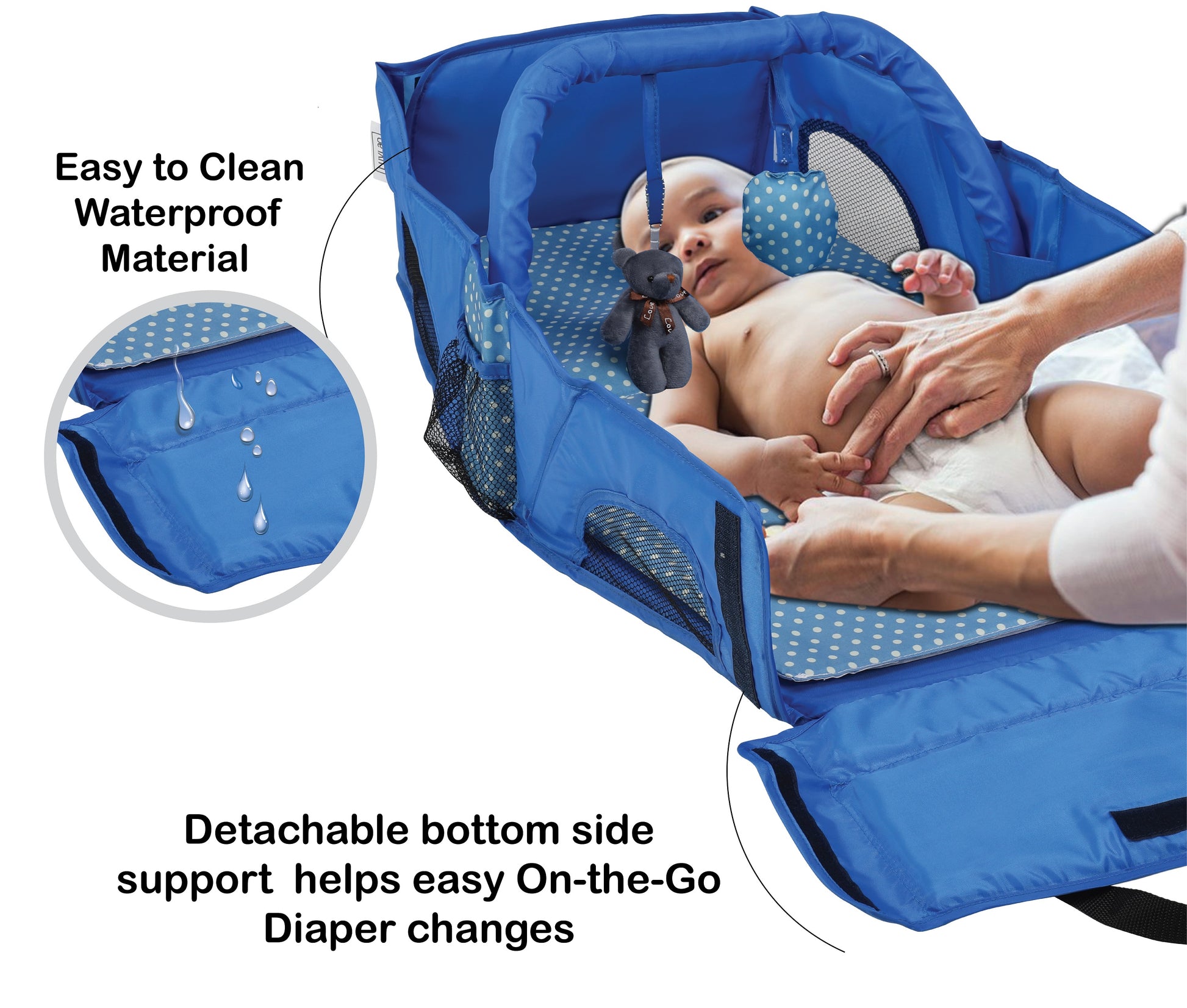 - Side supports on all four sides prevent baby from rolling removable and washable cushioned mattress for on-the-go nappi