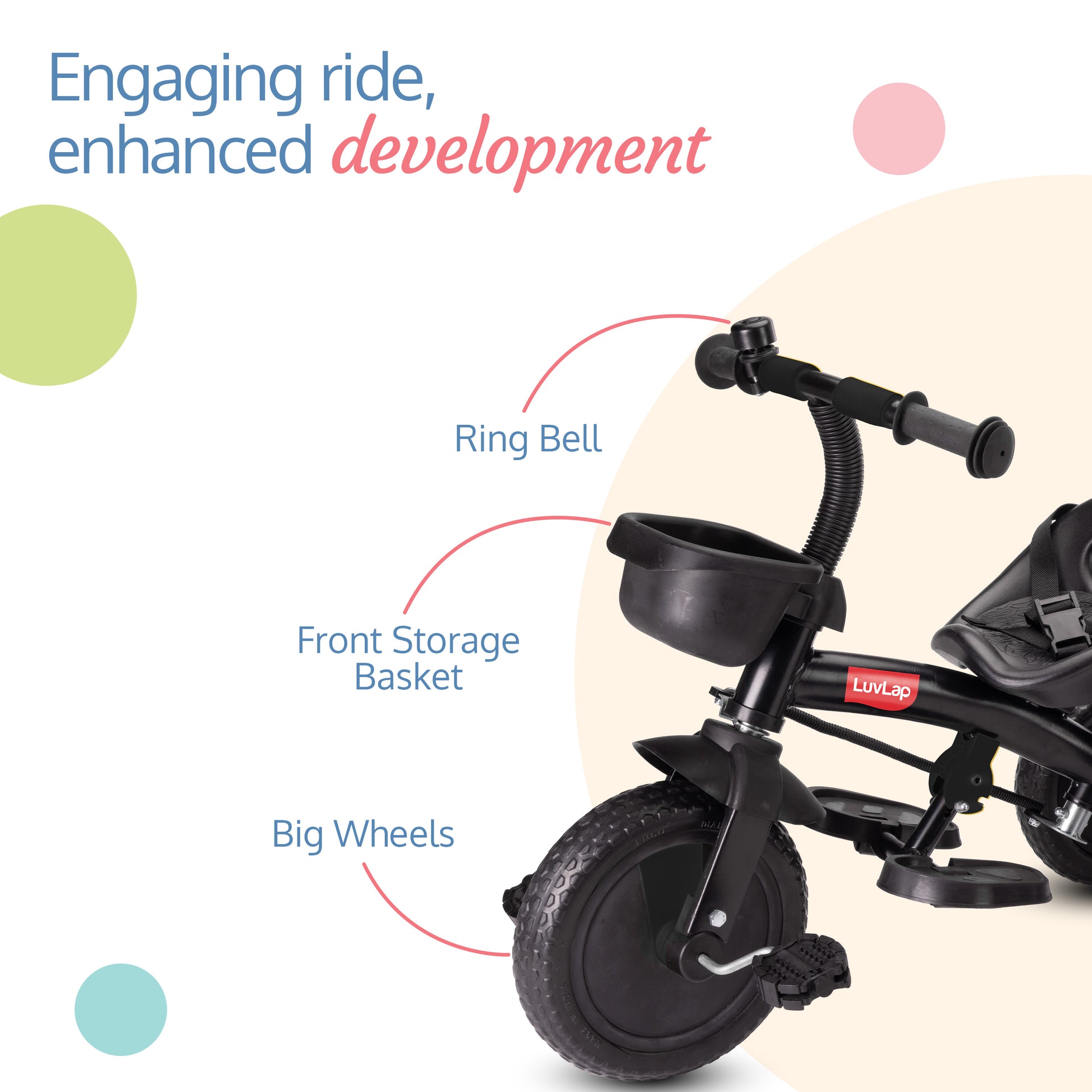 Discover endless smiles with the LuvLap Elegant Lite Baby Tricycle! Adaptable, safe, and vibrant, it grows with your child from 1.5 to 5 years. Secure harness, and storage basket for delightful outdoor adventures. Watch them pedal, learn, and thrive with joy!