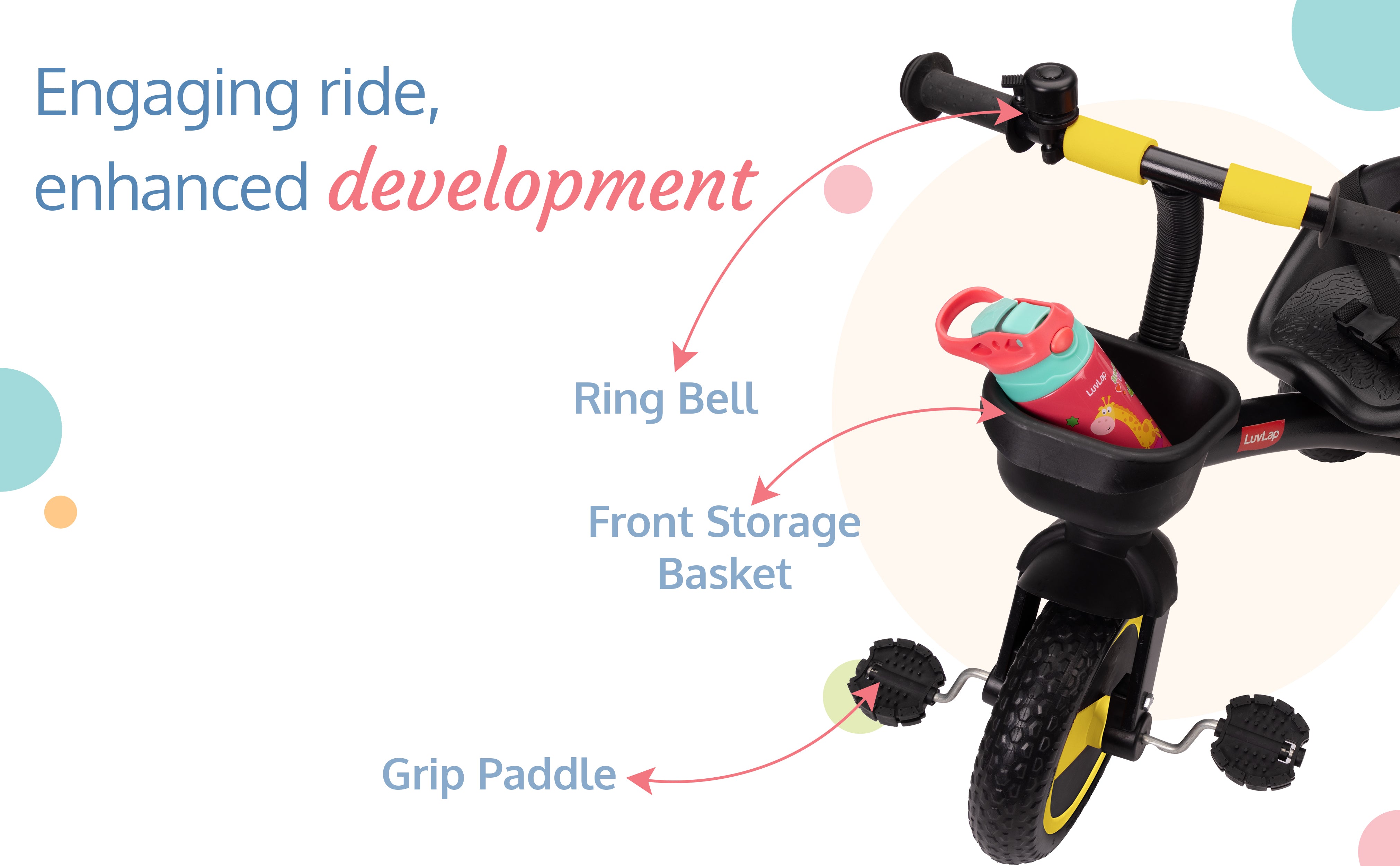 Discover endless smiles with the LuvLap Joy Baby Tricycle! Adaptable, safe, and vibrant, it grows with your child from 1.5 to 5 years. Secure harness, and storage basket for delightful outdoor adventures. Watch them pedal, learn, and thrive with joy!
