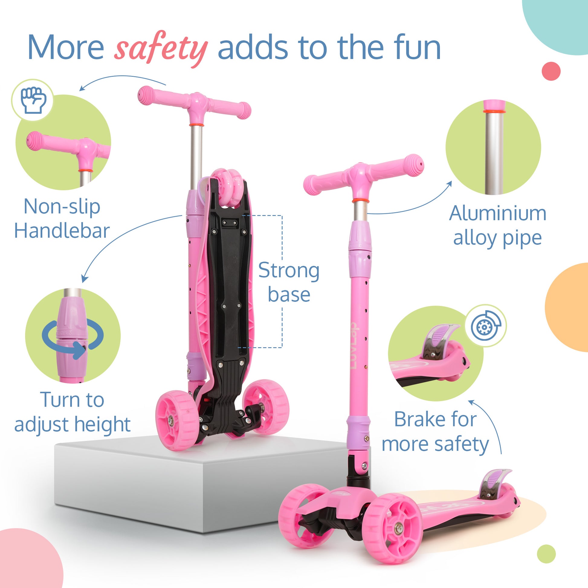 Joy Scooter for Kids- Toddler 3-Wheel Kick Scooter with LED Lights | Safe & Stable First Ride for 3-10 Year Olds | Adjustable Height & Easy-Grip Handlebars | Fun Outdoor Gear for Kids, Pink