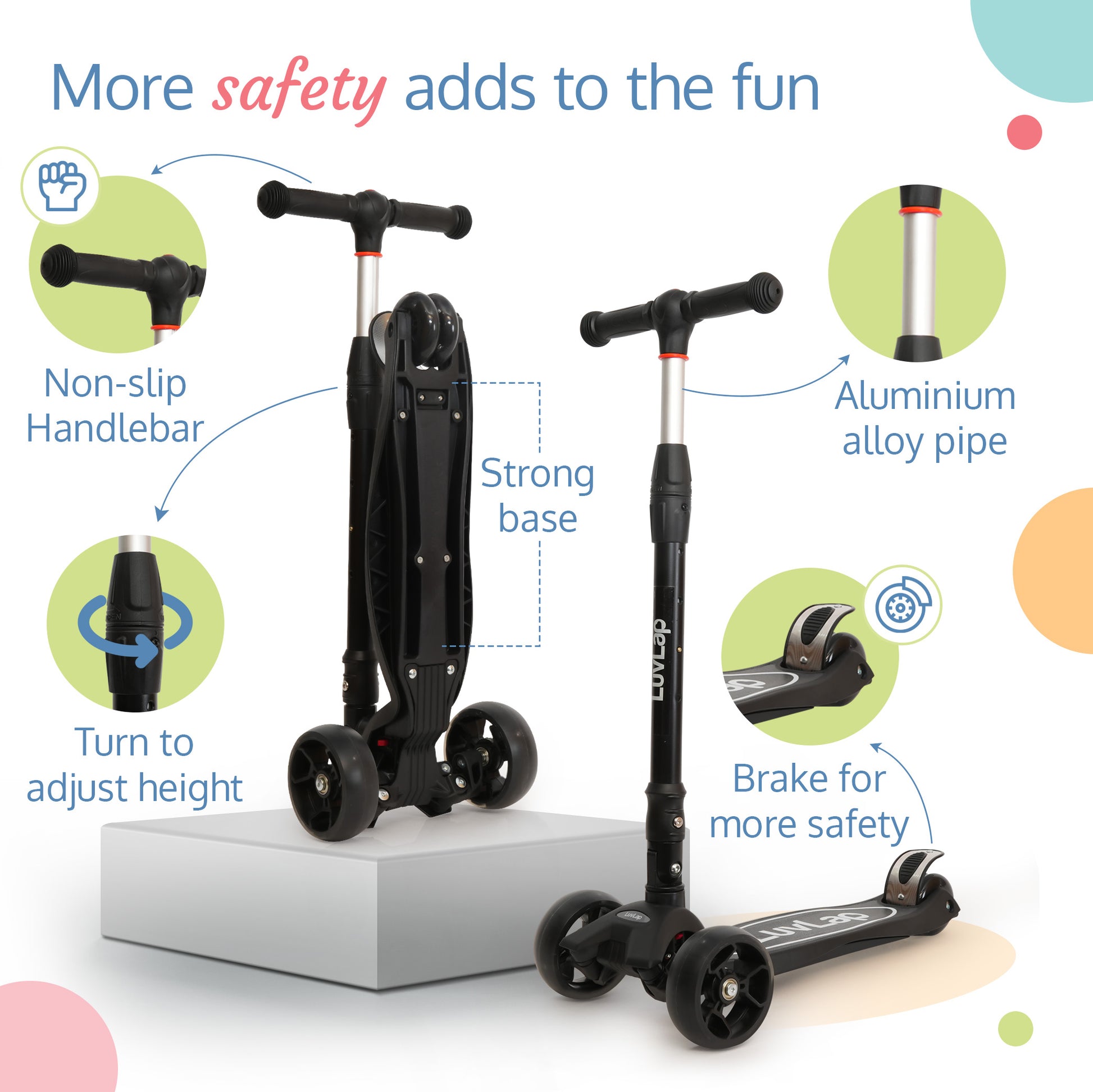 Joy Scooter for Kids- Toddler 3-Wheel Kick Scooter with LED Lights | Stable First Ride for 3-10 Year | Adjustable Height & Easy-Grip Handlebars | Fun Outdoor Gear for Kids, Black