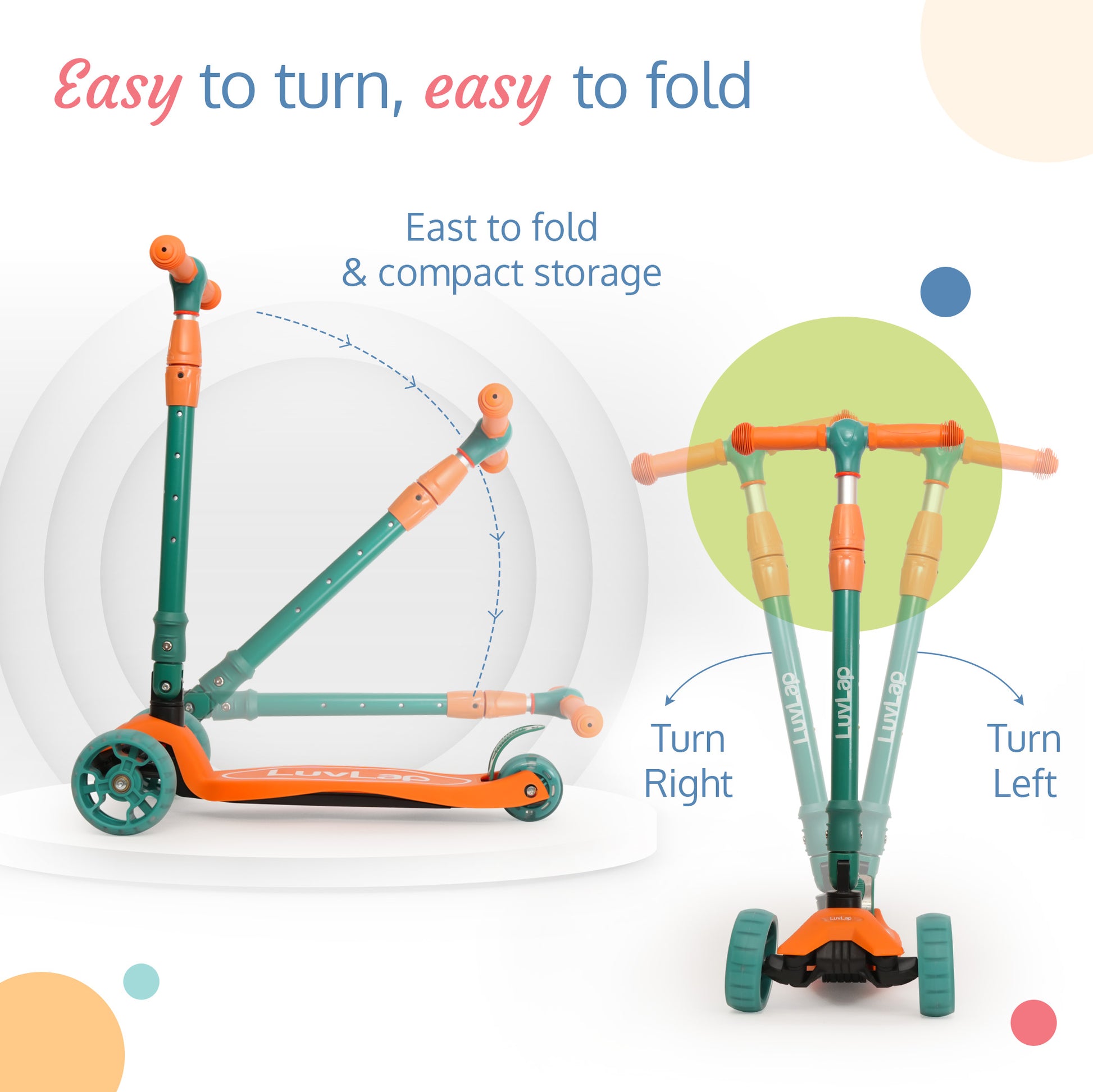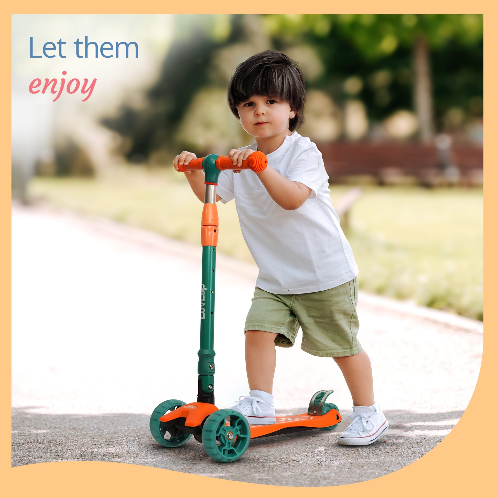 Joy Scooter for Kids- Toddler 3-Wheel Kick Scooter with LED Lights | Stable First Ride for 3-10 Year | Adjustable Height & Easy-Grip Handlebars | Fun Outdoor Gear for Kids, Green & Orange