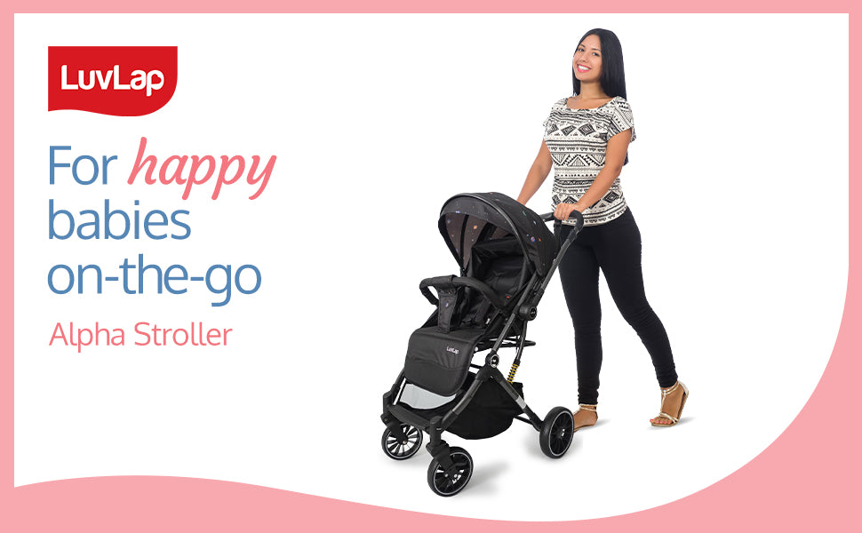 Alpha Baby Stroller/Pram, One Fold, Travel Friendly, 5 Point Safety Harness, Reversible Handle bar, Multilevel Recline & Adjustable footrest, Extendable Canopy, for Babies 0-3 Years (Black)