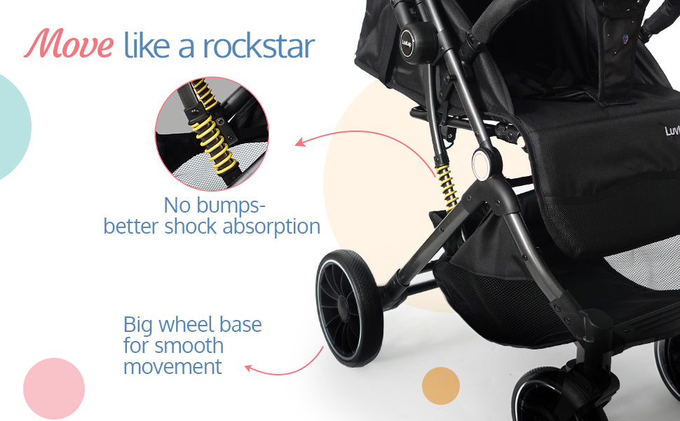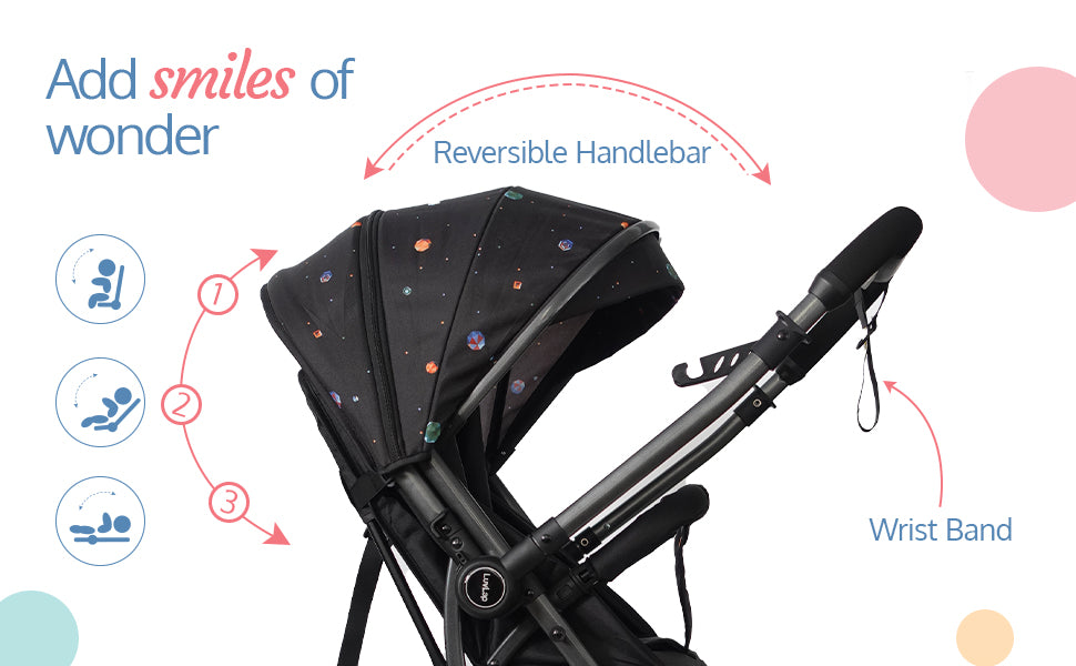 - Extra spacious stroller with heavy duty wheels - Best choice for outdoor use. Its reversible handle bar so that you can always keep an eye on your baby
