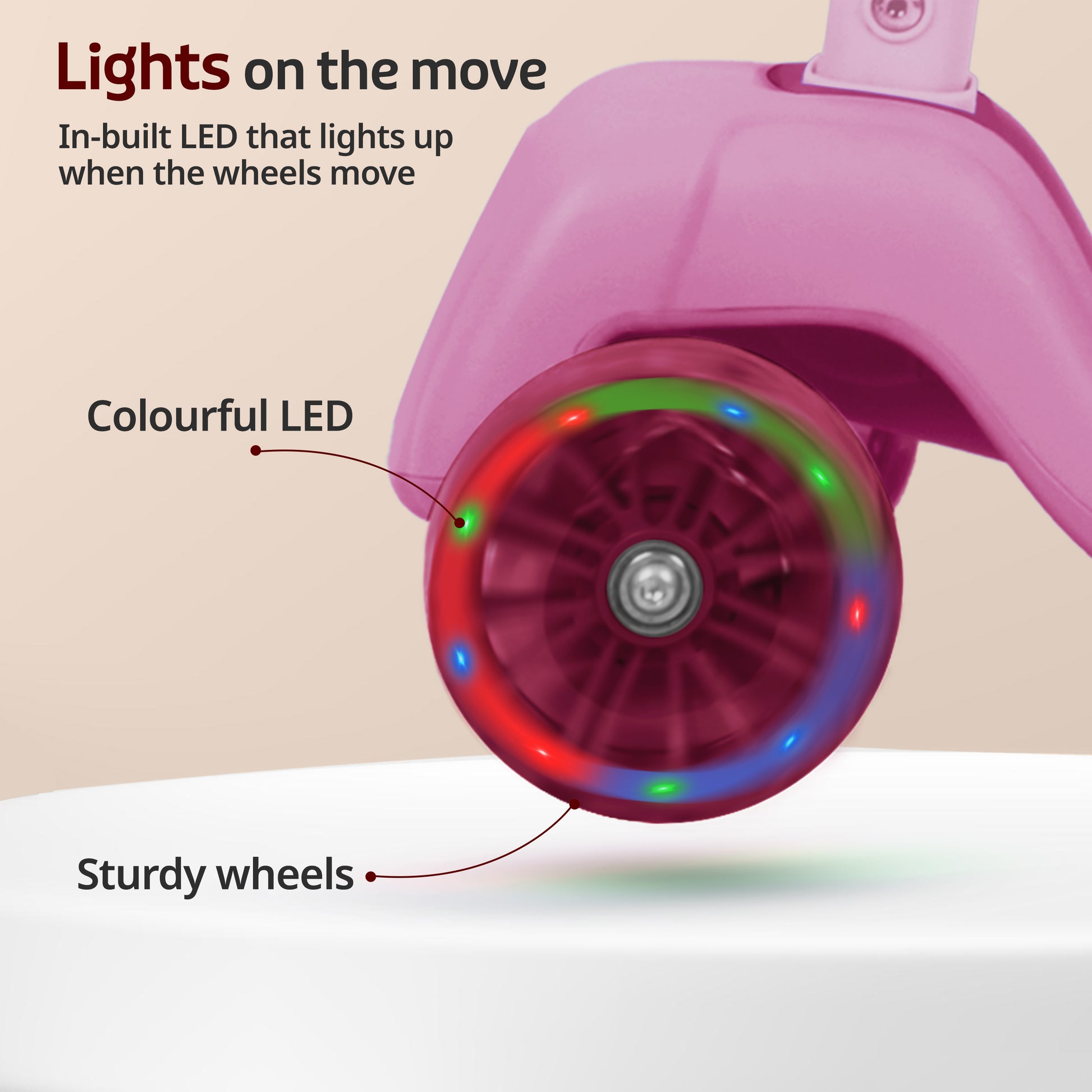 - Fun companion of Kids : 3 Shock-Absorbing, LED Flashing wheels.