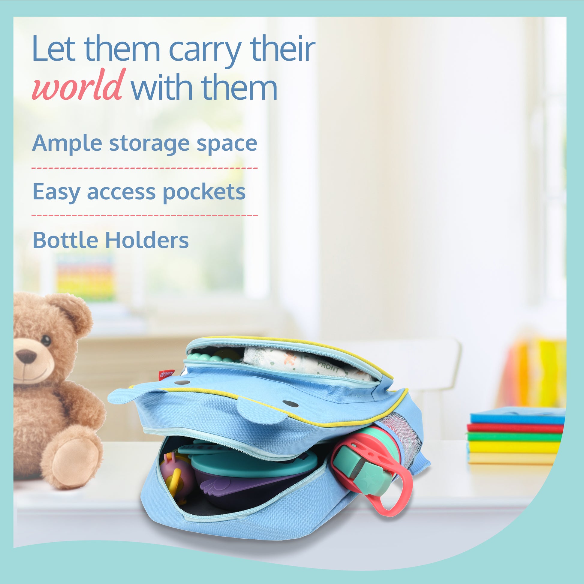 • Vibrant designs, perfect for young adventurers. Spacious compartments for books and toys.