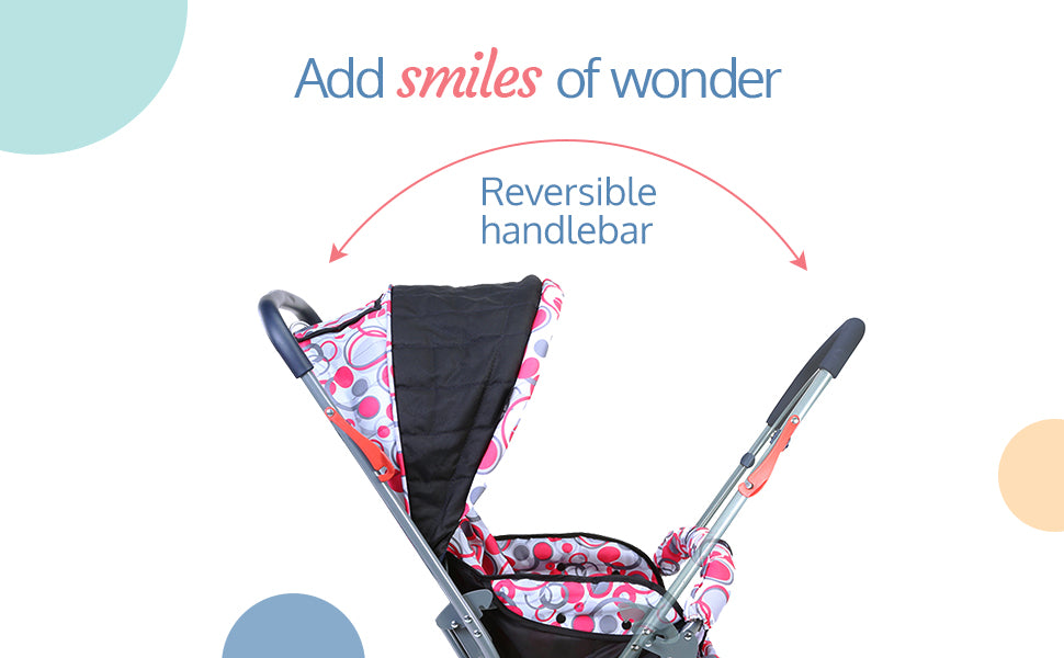 - Baby Pram with Easy Child Monitoring : Reversible handlebar - Allows baby to face parent while strolling, Peek - a - Boo window to keep an eye on child while strolling in forward mode