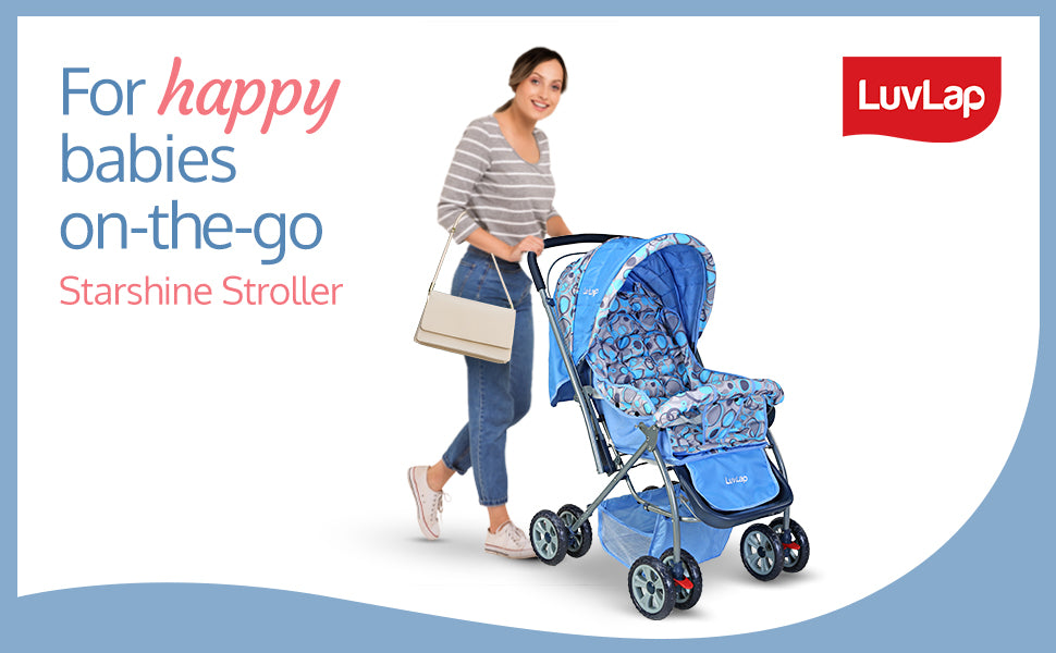 Starshine Baby Stroller/Pram for 0 to 3 Years, New Born/Toddler/Kid, Lightweight, Adjustable backrest, 360° Swivel Wheel, Large Storage Basket, Reversible Handlebar (Sky Blue)