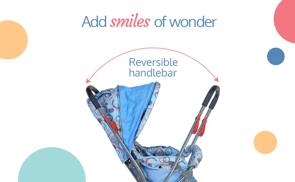- Baby Pram with Easy Child Monitoring : Reversible handlebar - Allows baby to face parent while strolling, Peek - a - Boo window to keep an eye on child while strolling in forward mode