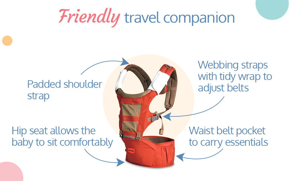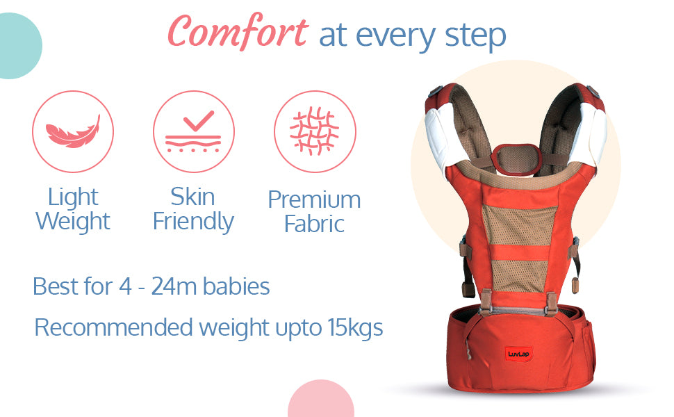 - Breathable mesh back support provides ventilation & comfort to baby’s delicate skin. Detachable side buckles for easy usage. Waist belt pocket to carry essentials