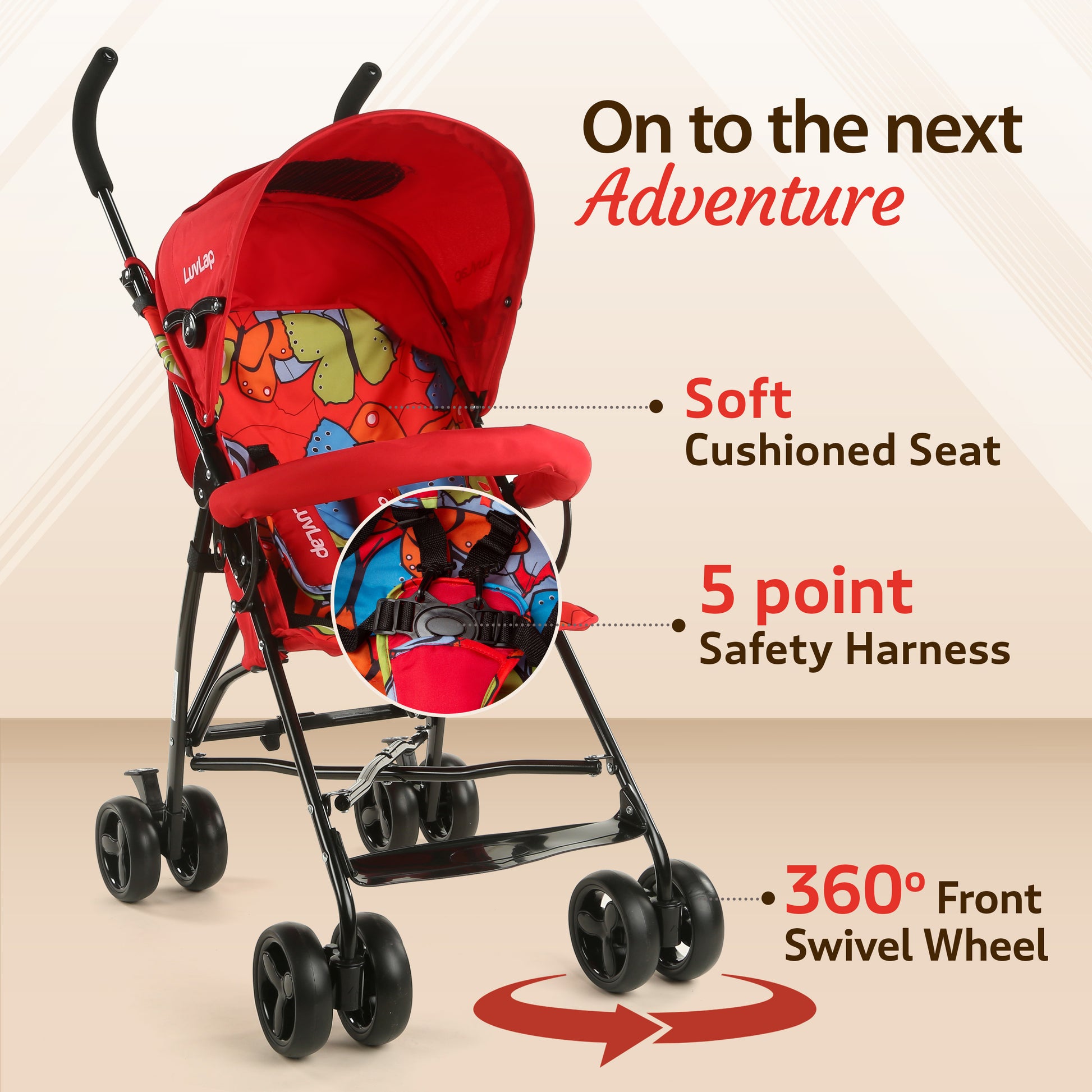 LuvLap Buggies are a light & compact travel companion for those magical joy rides with your baby or toddler. Tested & Approved by Indian mothers, our buggies conform to the highest performance standards. So don't think twice on investing in a LuvLap Buggy. Your next adventure with your child awaits you.