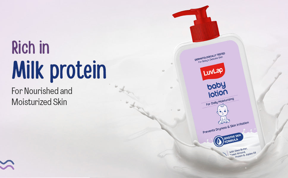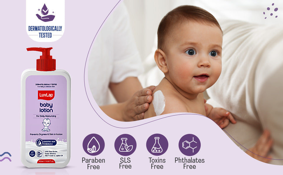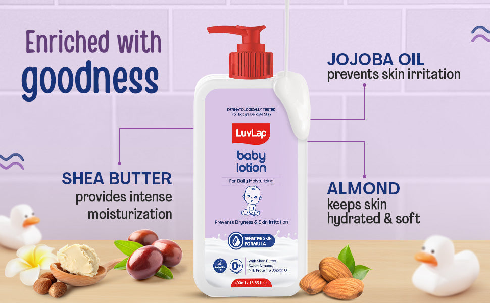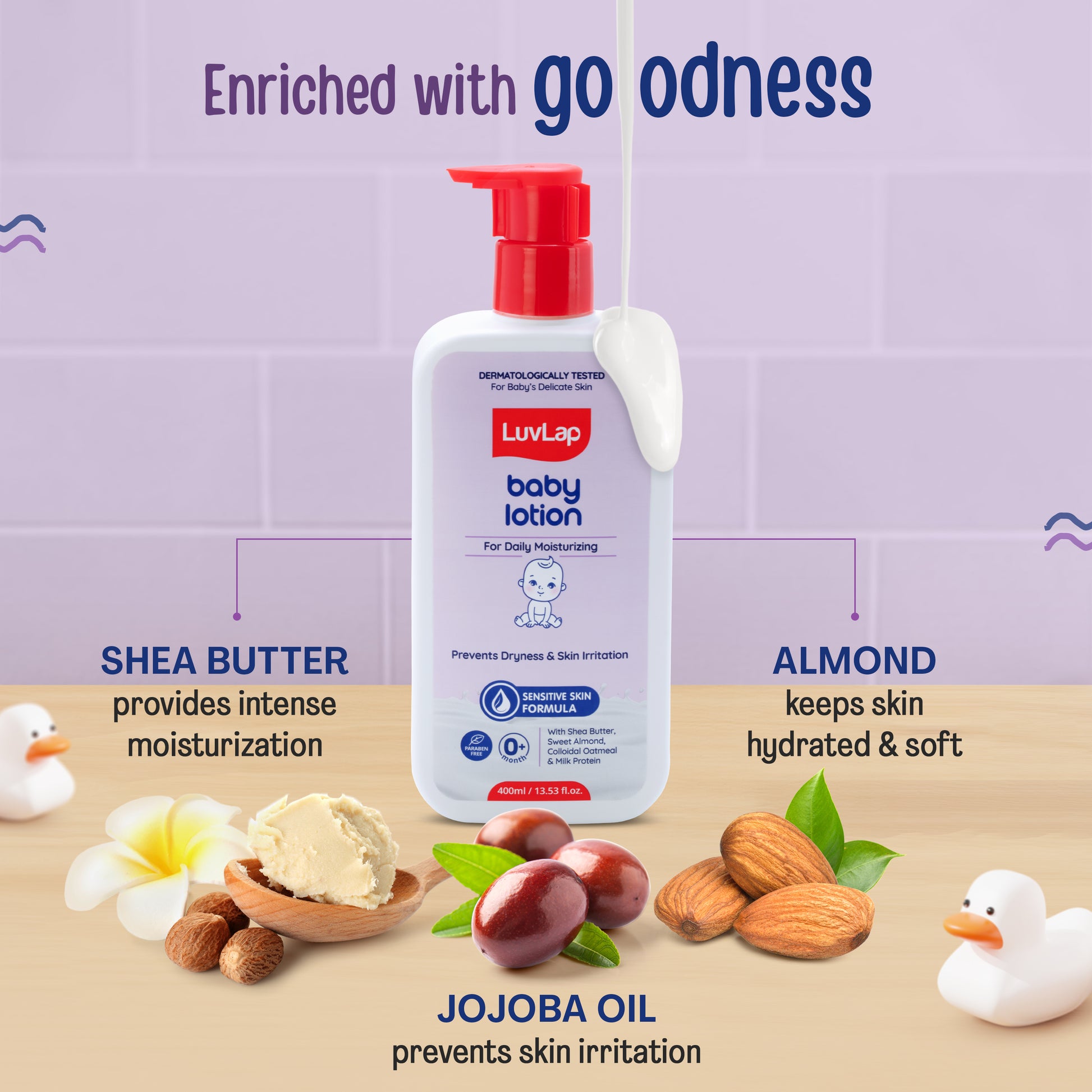 LuvLap Baby Lotion with Milk Protein - 400ml, Suitable for Baby’s Delicate Skin, 24 Hour Protection for Sensitive Skin, Shea Butter and VIT E, Paraben Free, Sweet Almond Oil, Dermatologically Tested