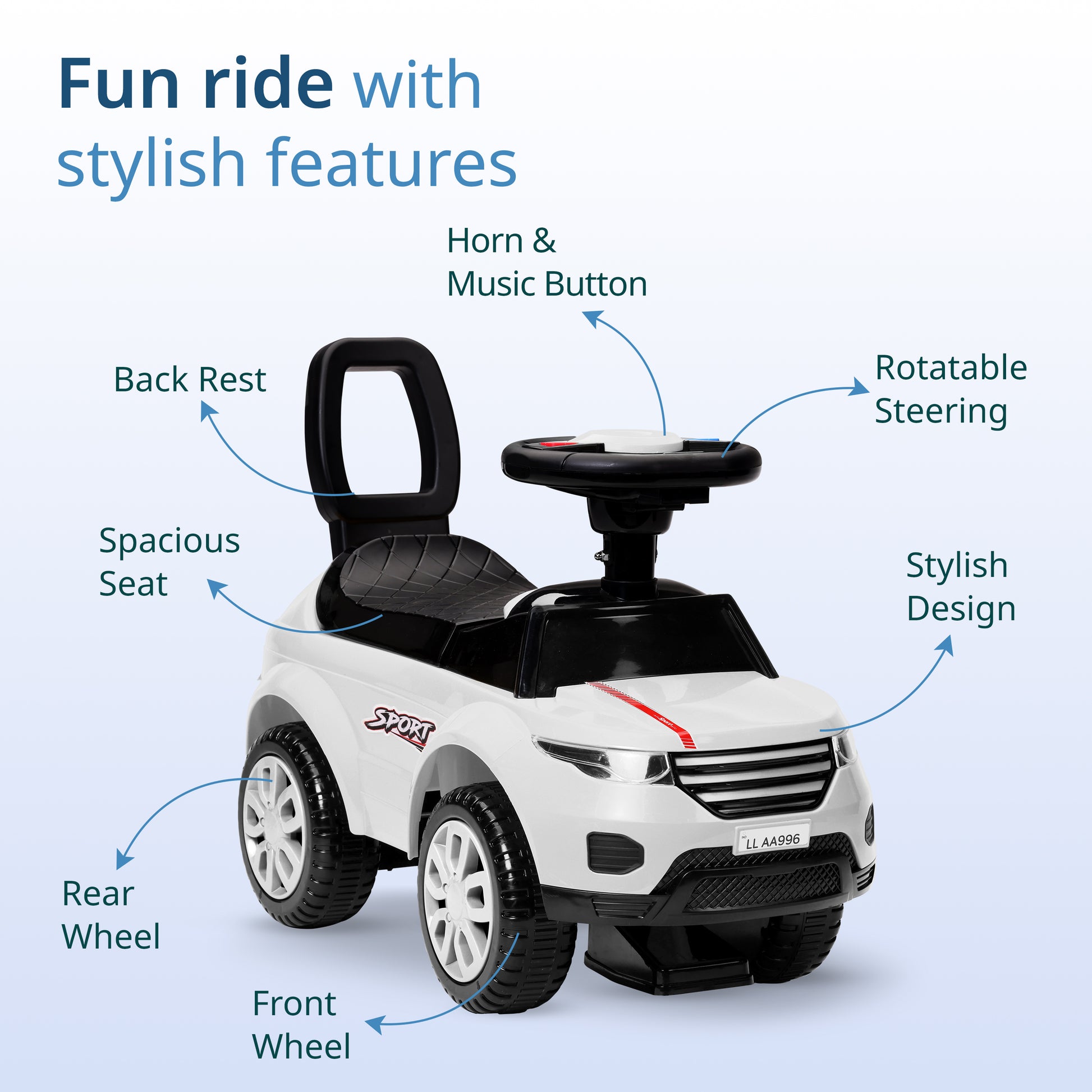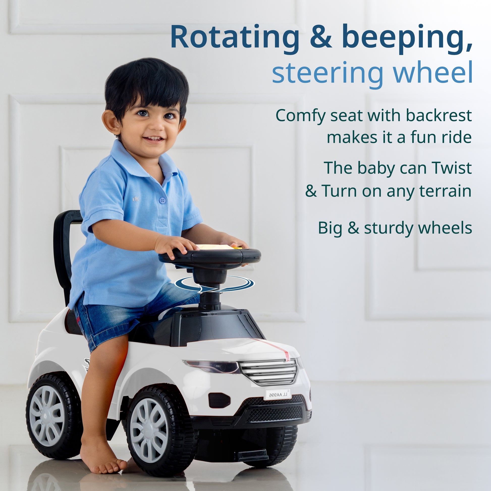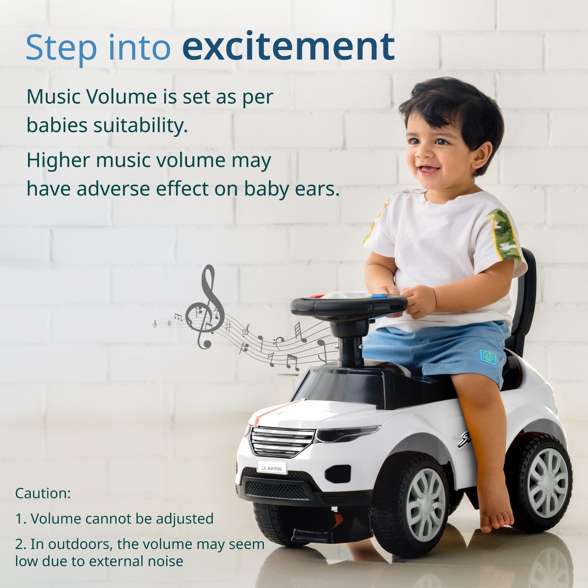 Starlight Ride on & Car for Kids with Music & Horn Steering, Push Car for Baby with Backrest, Safety Guard, Under Seat Storage & Big Wheels, Ride on for Kids 1 to 3 Years Upto 25 Kgs (White)