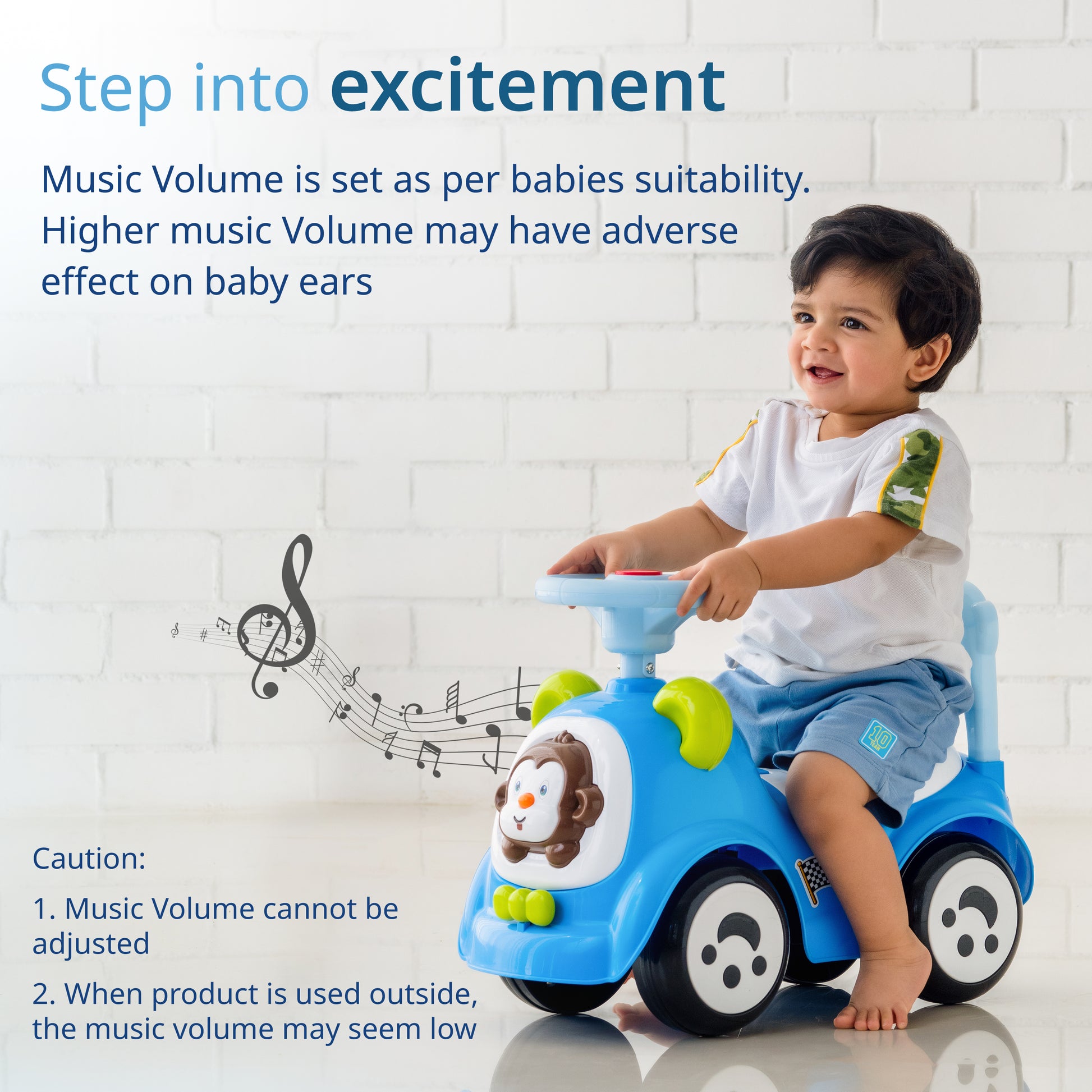- Safe and secure: Sunny babycar Ride on ensures better safety prescribed for babies andtoddlers