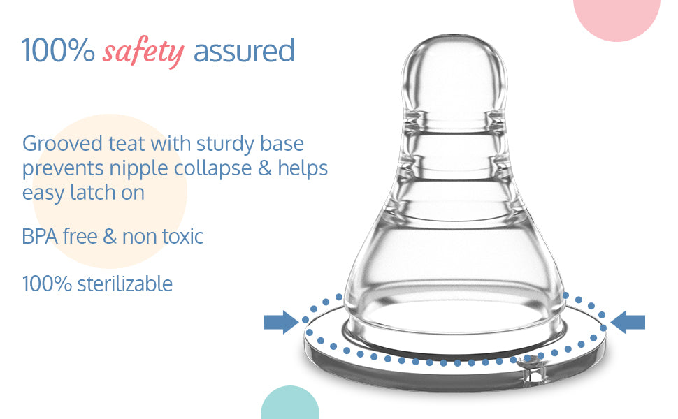 The product I received is not a sturdy base grooved nipple. It’s a simple nipple in which milk flow is very slow and keep on collapsing. But the specification says it’s a Sturdy Base & grooved nipple. I am a Disappointed customer. Trying to get the product through customer care as per specification but there is no response.