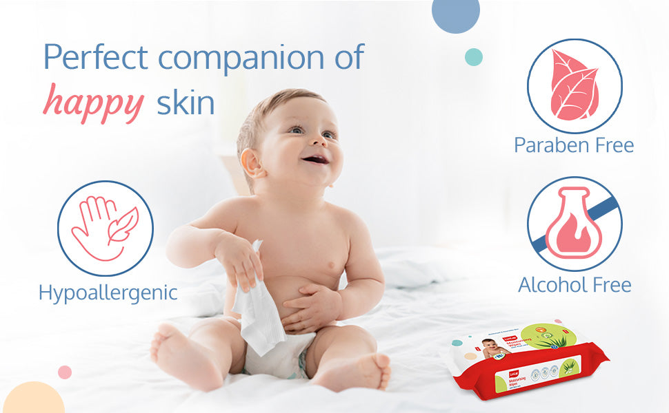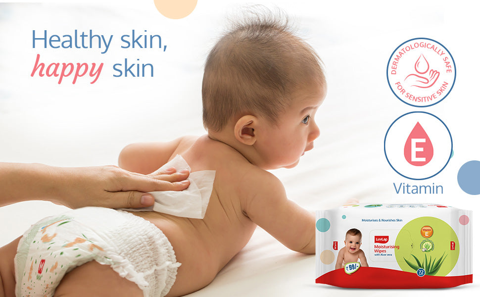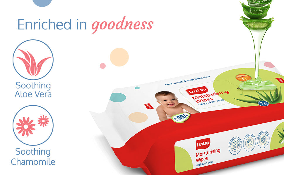 LuvLap moisturizing baby wipes with aloe vera are the perfect wipes for your baby's delicate skin. Enriched with the goodness of aloe vera and chamomile, they are completely free of alcohol and harmful parabens. After all, your baby's safety is our prime concern.
