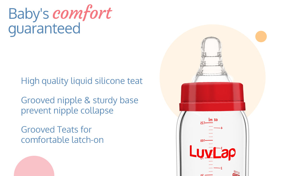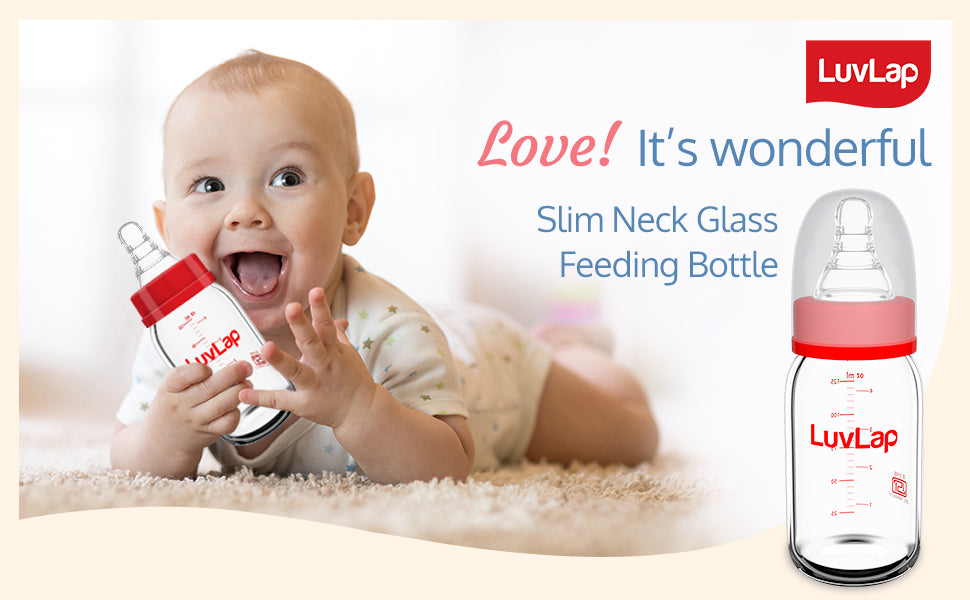 LuvLap Essential Slim Neck Glass Feeding Bottle, New Born/Infants/Toddler Upto 3 Years, 125ml