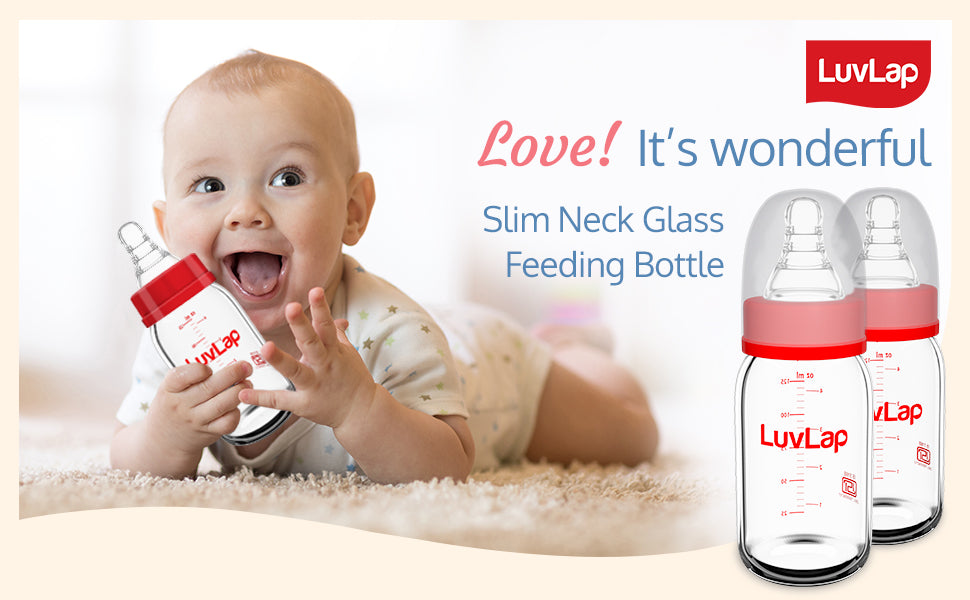 LuvLap Essential Slim Neck Glass Feeding Bottle, New Born/Infants/Toddler Upto 3 Years, 125ml