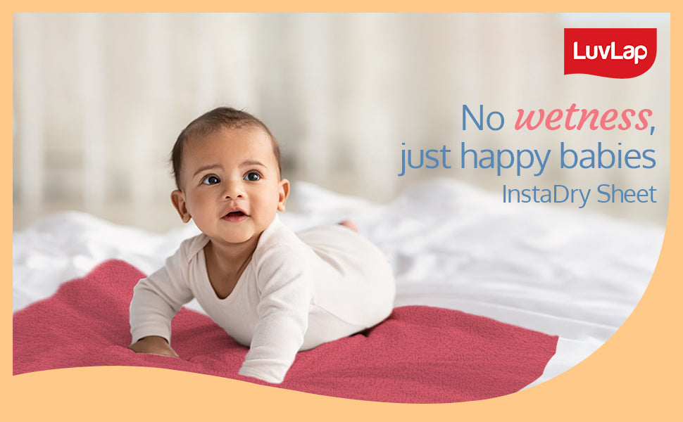 LuvLap Instadry extra absorbent sheet with soft and breathable material ensures greatcomfort for new born babies. It ensures baby's sleep without the irritation of wet beds. Mothers arealso free of worries as it is very hygienic, allergy, fungus, bacteria and dust mite free. It's 100%reusable water proof material does not have any rubber or plastic smell. Its very lightweight andthus very easy to carry. It also makes the mom's life hassle free by not letting the bed sheets andmattresses getting stains.