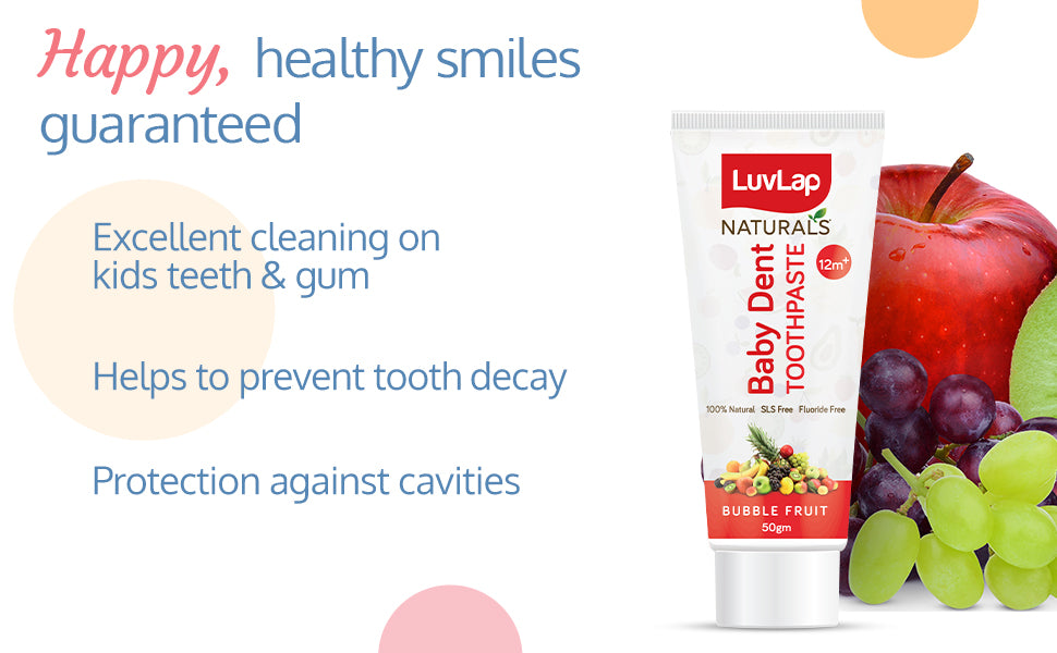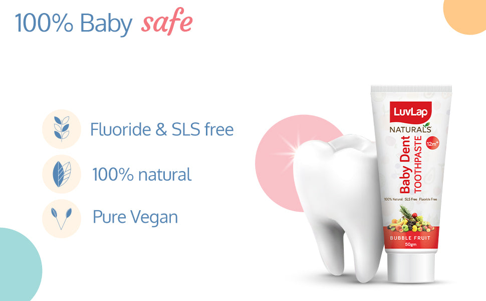 LuvLap Naturals Baby Dent Toothpaste is additive free & its 100% Natural Plant based formula ensures best dental hygiene for toddlers and Kids.