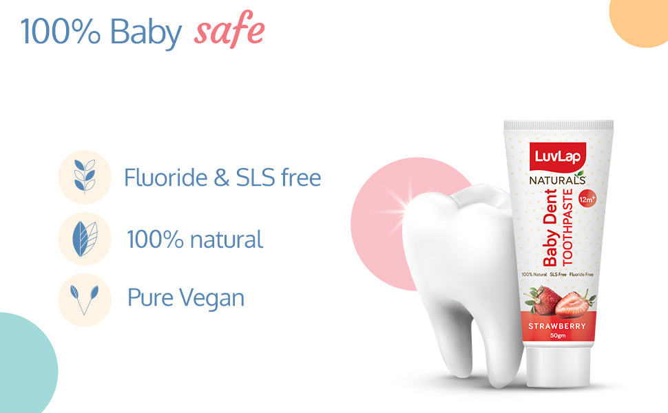LuvLap Naturals Baby Dent Toothpaste is additive free & its 100% Natural Plant basedformula ensures best dental hygiene for toddelrs and Kids