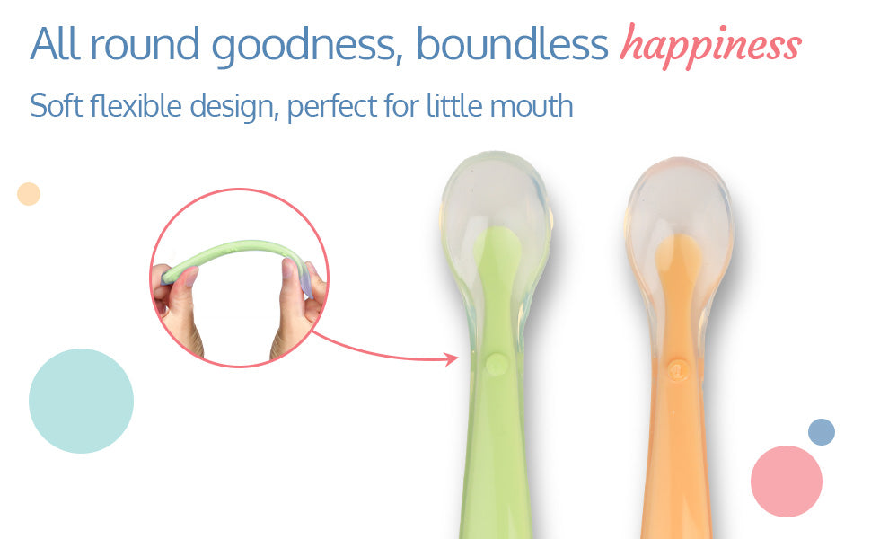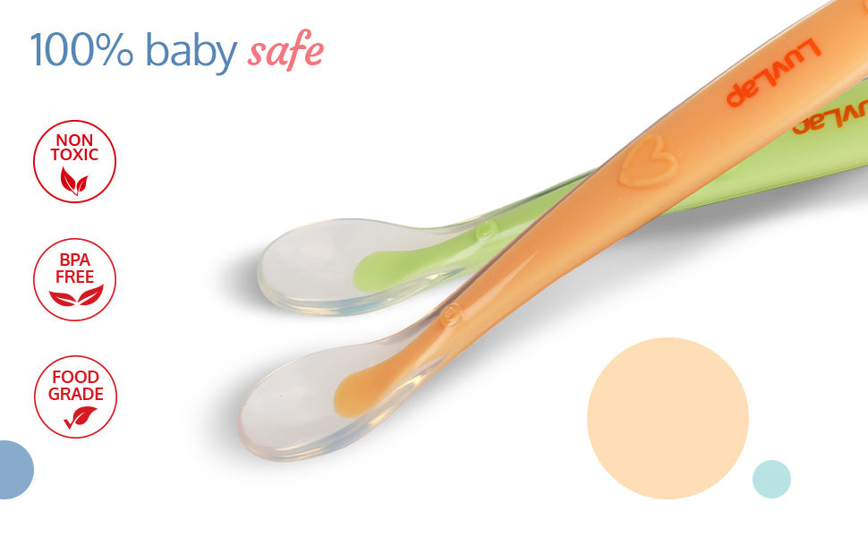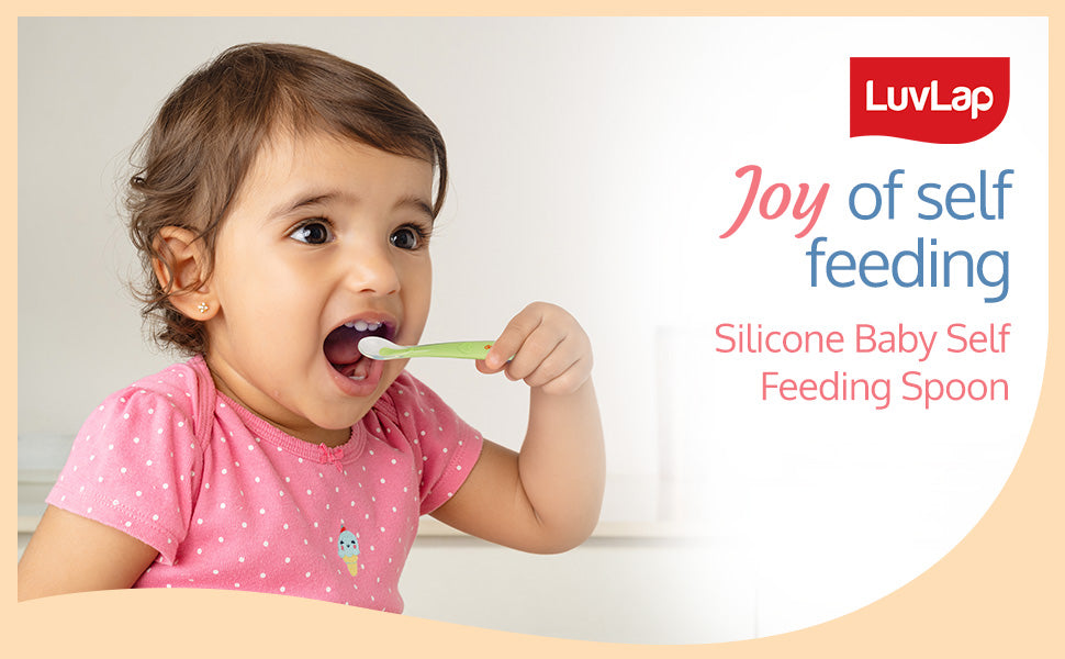 LuvLap Silicone weaning (self feeding) spoon has an ultra supple silicone tip especially designed for a baby's transition from teat to spoon. The soft spoon is soft on baby's gums and completely safe for gums. It's long, wide ergonomic handle designed for adult hands to grip easily while feeding and is bowls. The spoon is made of premium food grade silicone. Cleaning is easy & it is dishwasher friendly.