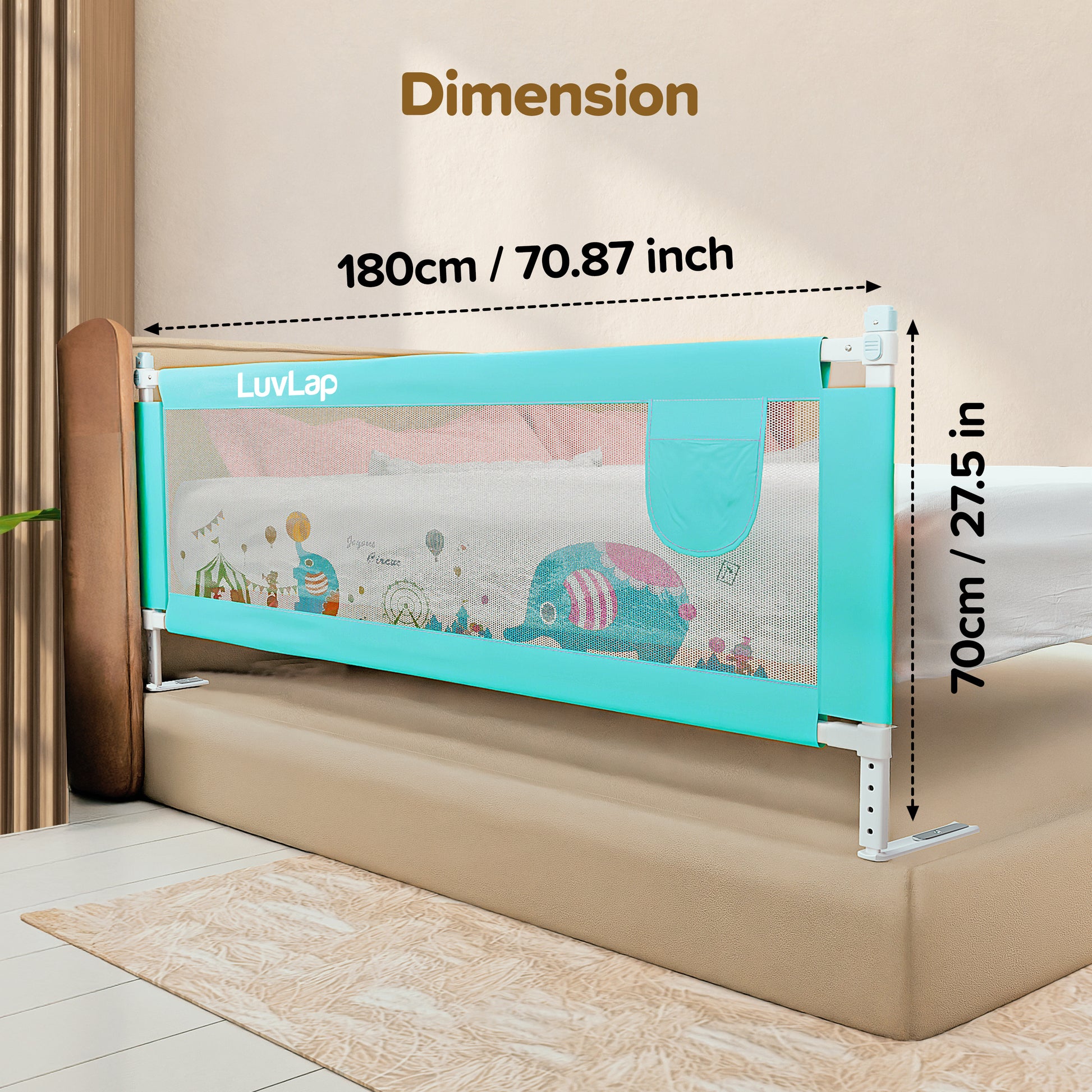 - Breathable, see through mesh fabric gives clear view of baby's actions. Mesh fabric is washable and easy to maintain. The height of the bed rail can be adjusted according to the convenience and baby's height