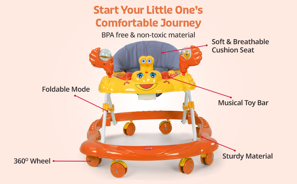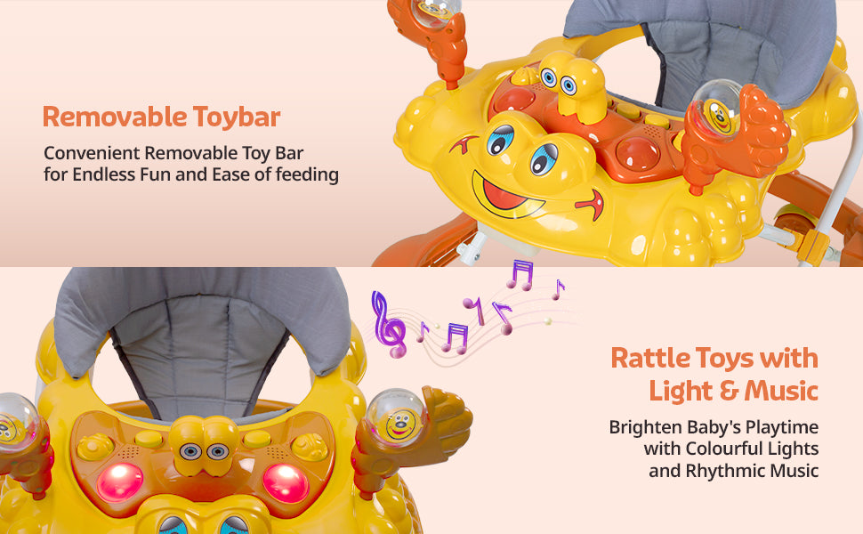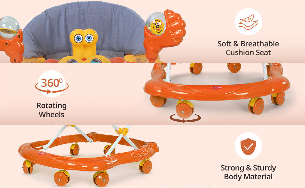 Starshine Baby Walker 9+ Months | 3 Level Height Adjustment Walker/Advanced Baby Activity Walker, Orange
