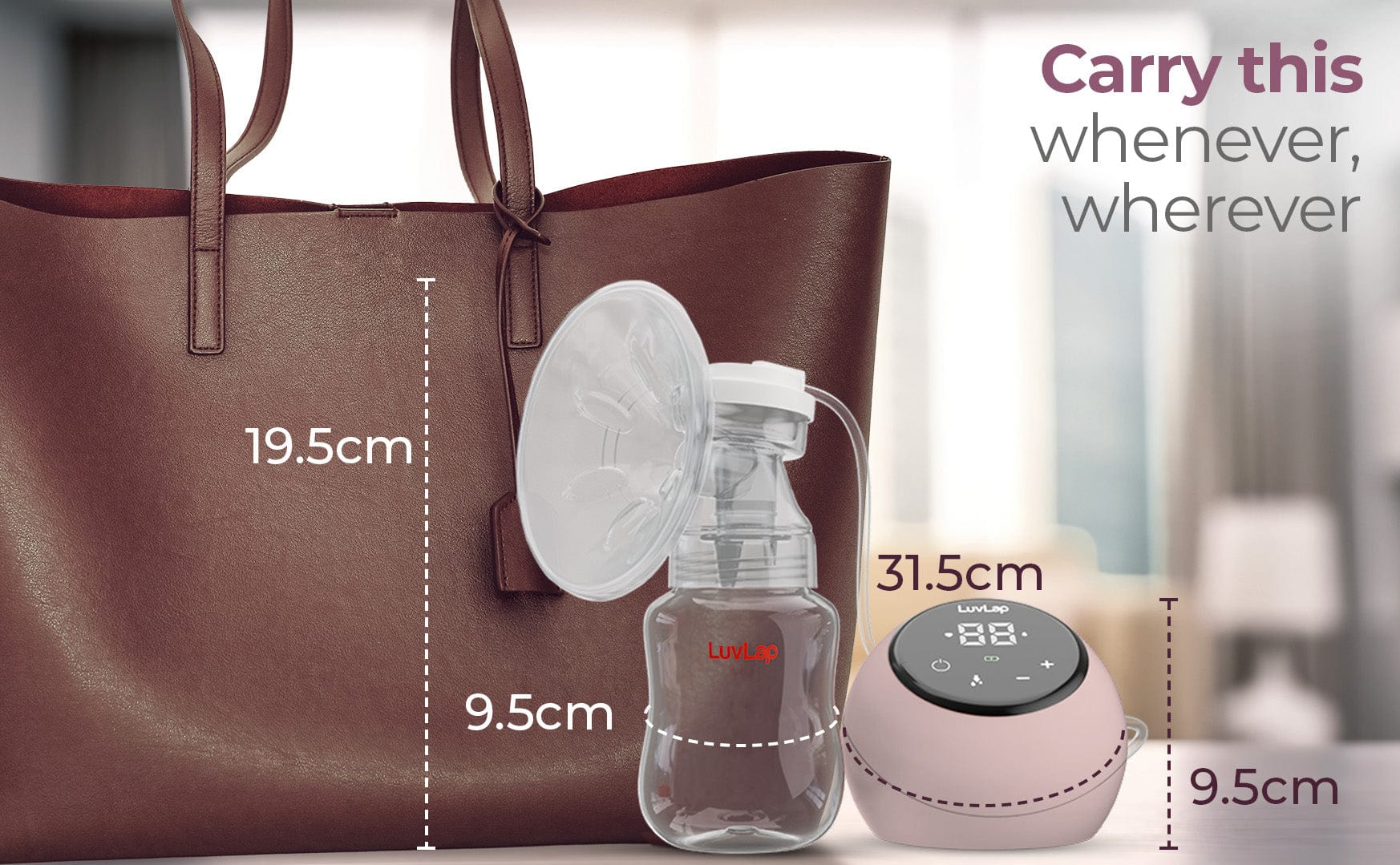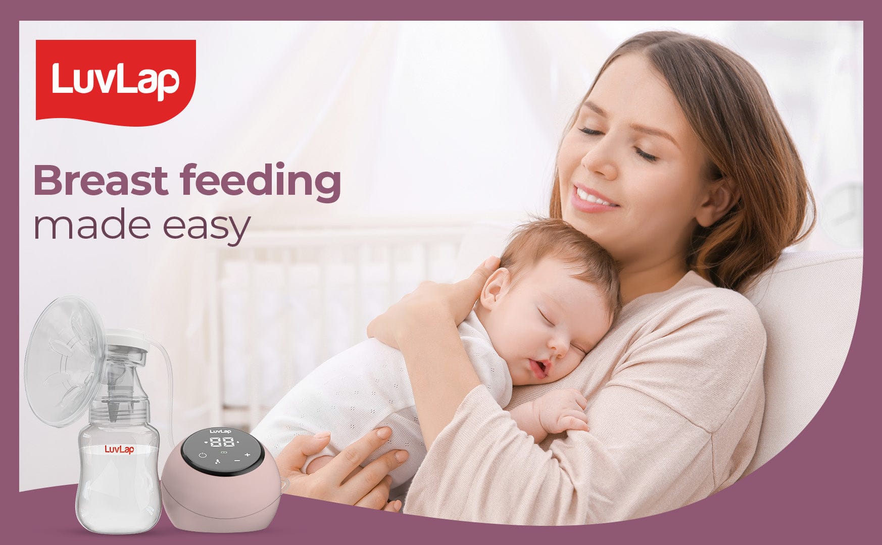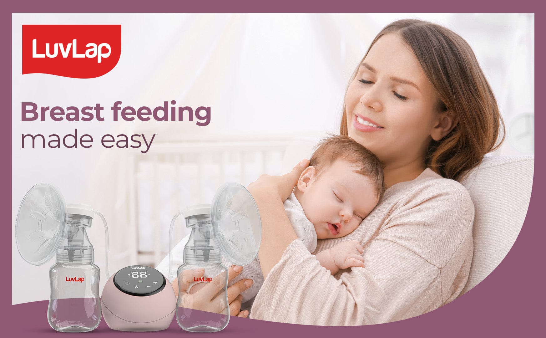 LuvLap Adore Electric Breast Pump is designed to mimic a baby's natural breastfeeding rhythm, making expression a pleasant experience for the mother. The soft silicone massage cushion along with 2 pumping stages of stimulation & expression help to give a natural-like experience. Each mode has 9 intensity levels, and the Smart Memory function remembers the last used setting. The package includes an Electric Unit, One Pump Unit, One Milk Container, Nipple, Bottle Neck Part & Cap and Two Breast pads Free .