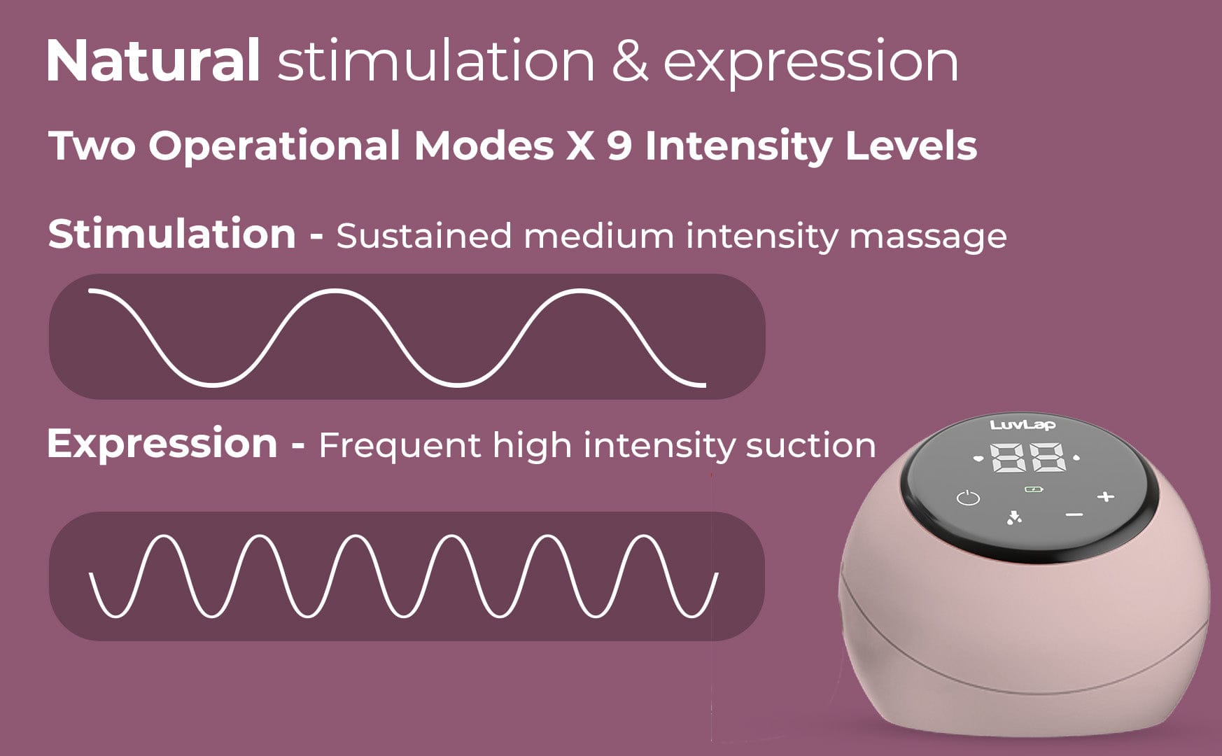 - 2 phase operation: Massage & Expression with 9 level intensity adjustment per mode