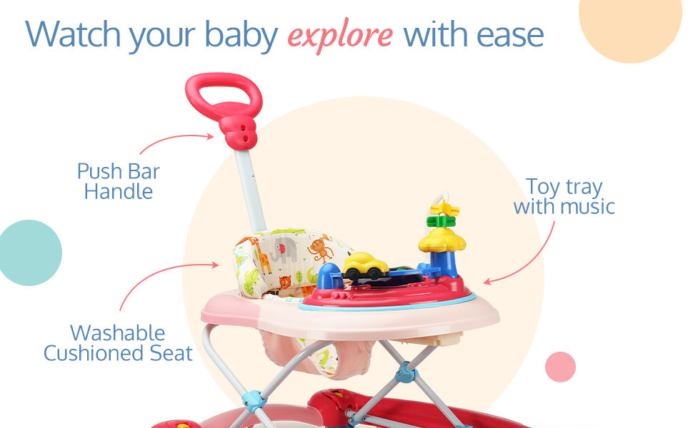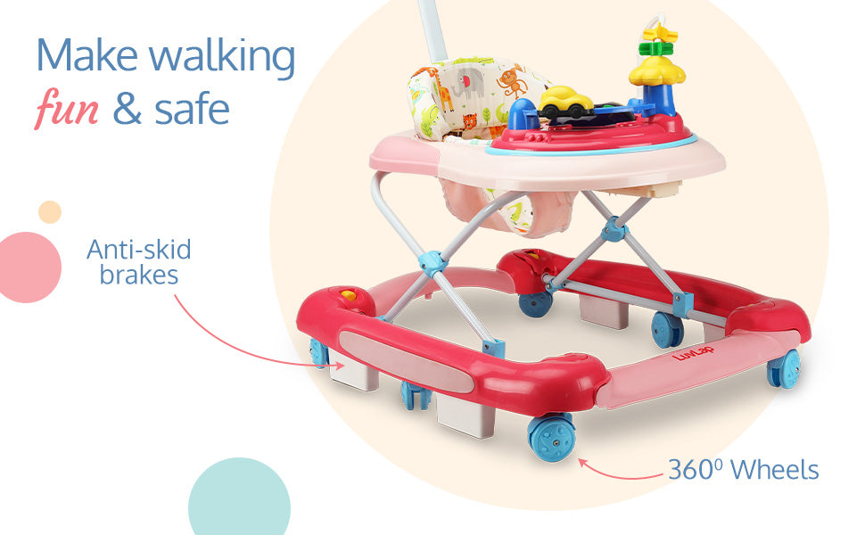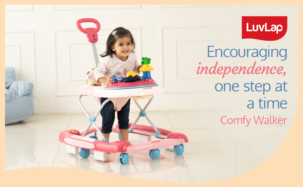 Watching your baby learn to walk is an experience to cherish forever. We at LuvLap are committed to the baby's safety and comfort so that you can enjoy parenthood to the fullest. Our trendy range of walkers is designed keeping in mind your baby's safety and comfort. Equipped with the latest features the walkers support your baby in learning to walk: