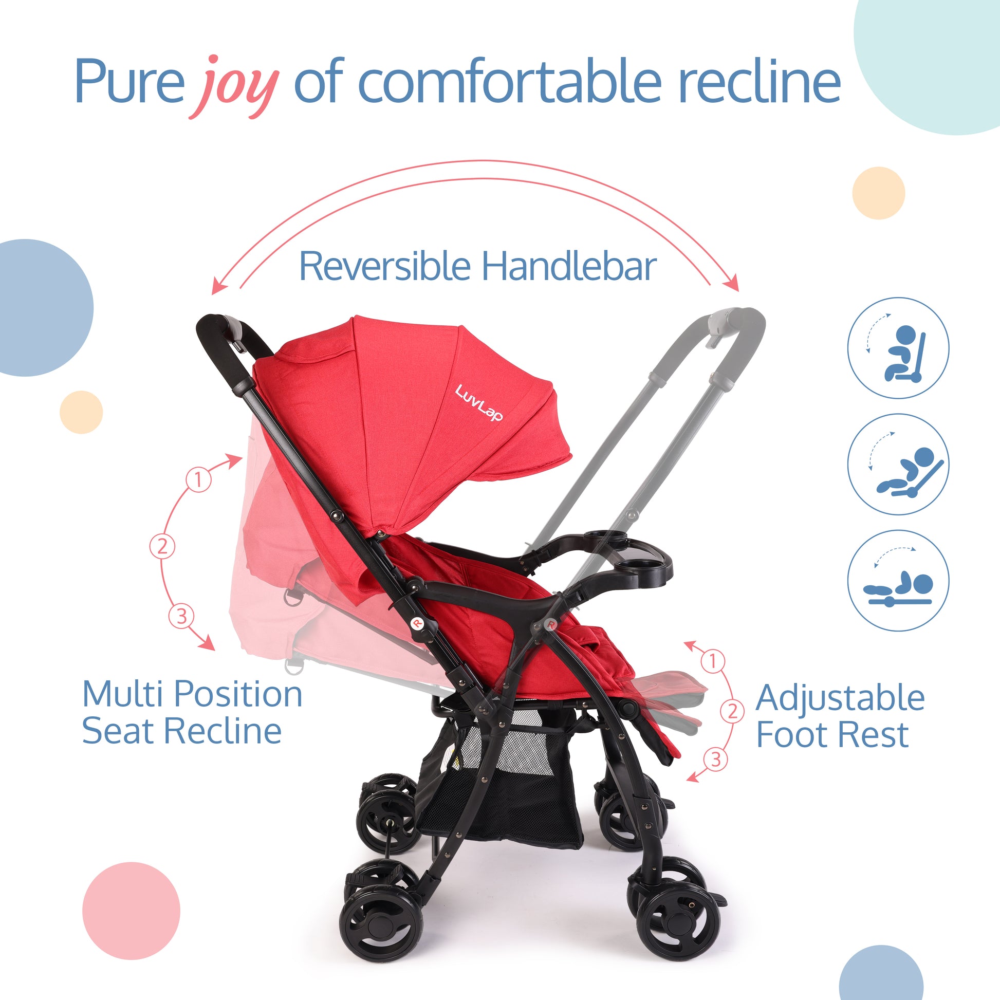 LuvLap Spark Baby Stroller/Pram is your baby's outdoor travel essential. It comes with 5 point SafetyHarness for safety. For maximum comfort of your baby there are multiple features like Reversiblehandle bar and Multiple level seat recline. It comes with Extended Adjustable Canopy with peek-a-boo window to keep an eye on your baby while strolling