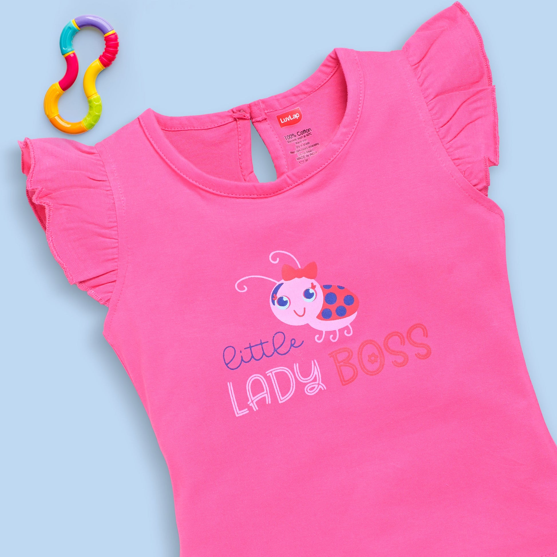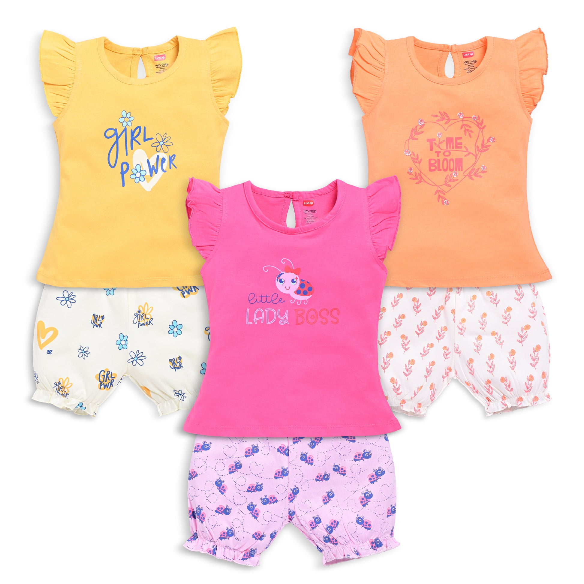 Baby Girls Regular Fit 100% Cotton Half Sleeves Girls Top CoSets Pack Of 3, Papaya, Hot Pink & Gold