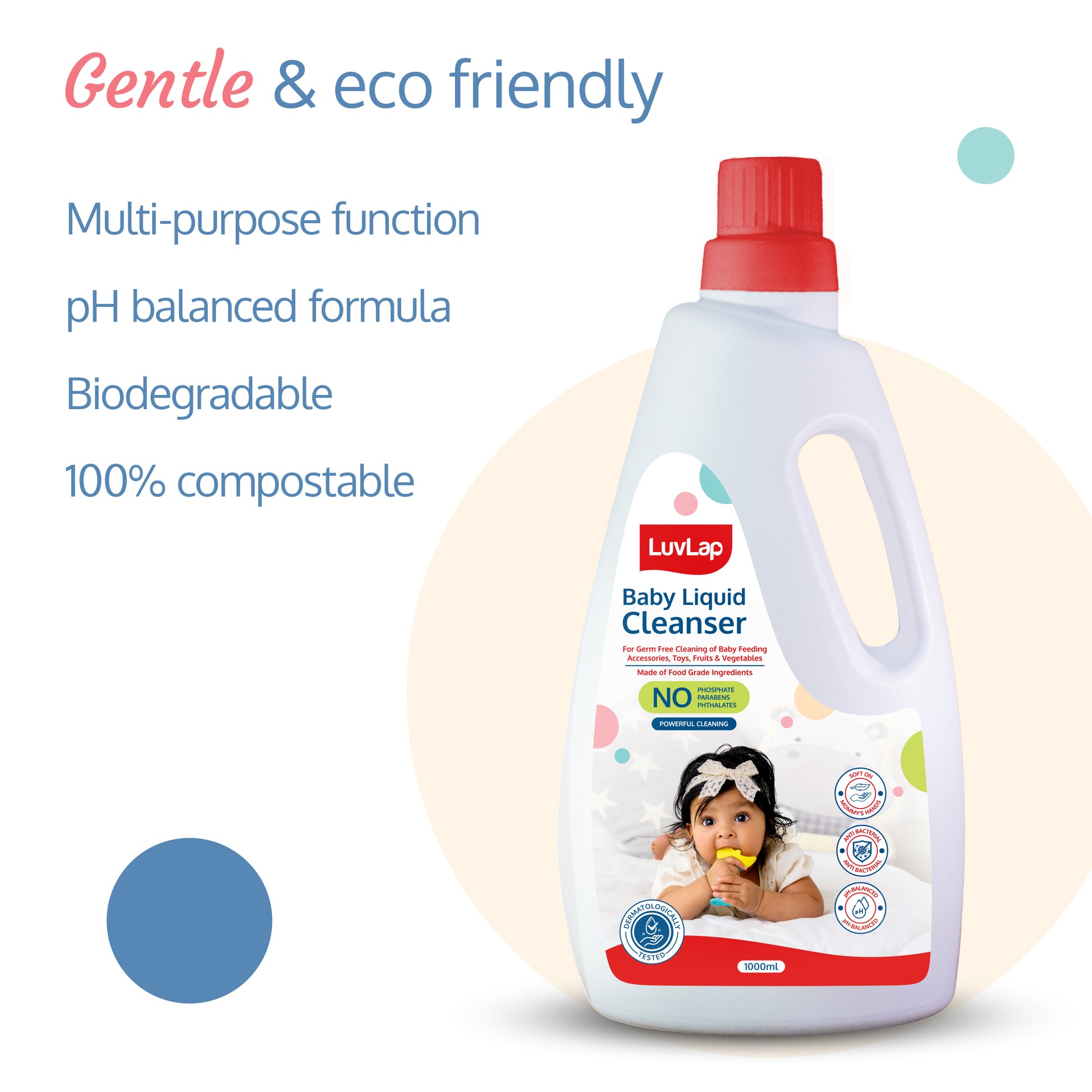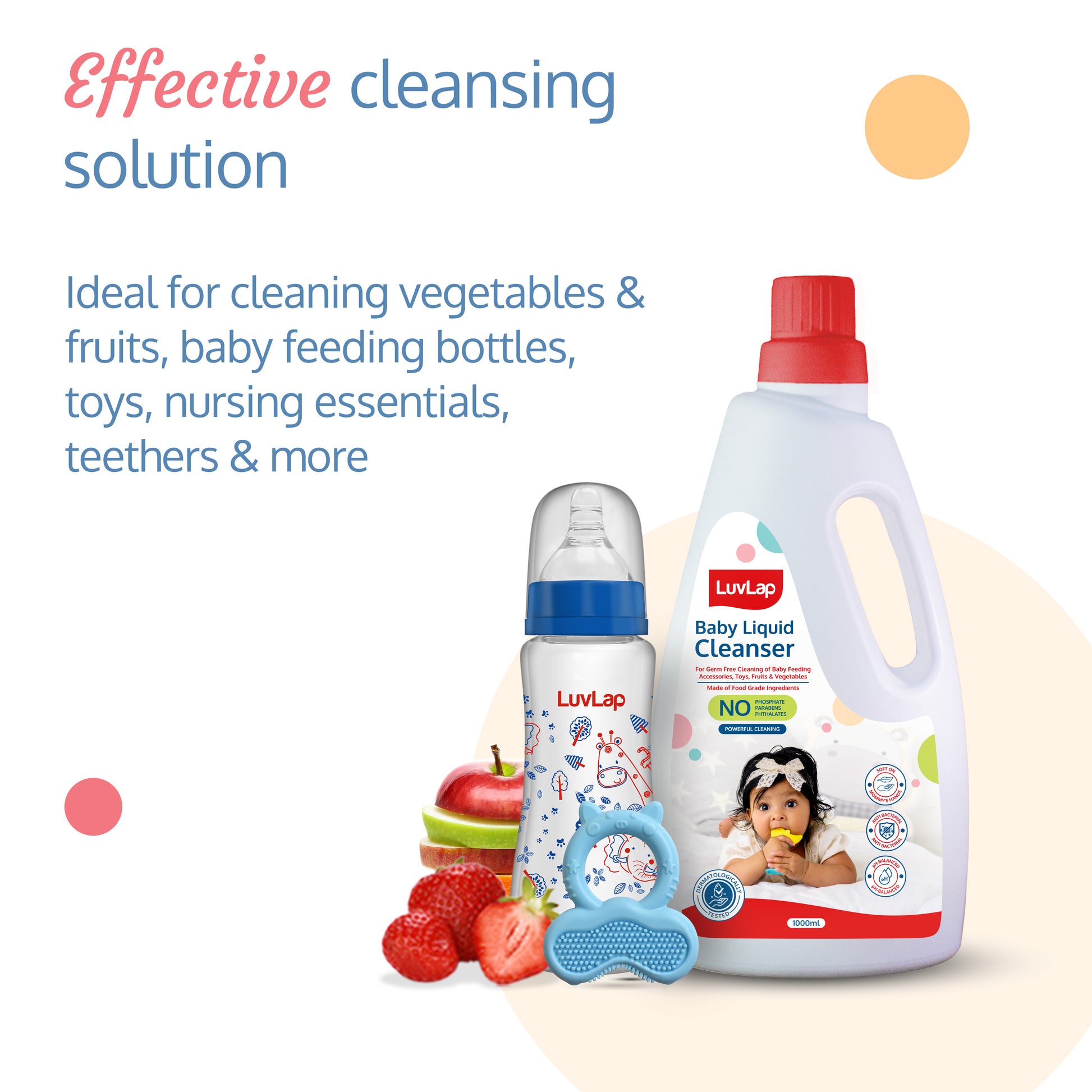 Baby Liquid Cleanser 1000ml, For cleaning feeding bottle, cutlery, toys, fruits & vegetables, Kills 99.9% Germs, pH Balanced Dermatologically tested formula, No harsh chemicals, Bio-degradable