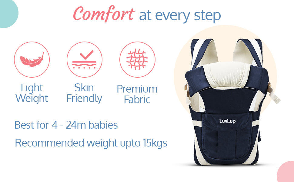 After long search, I wanted to try luvlap baby carrier, The material is very soft, breathable. It's easy to wear and sturdy.