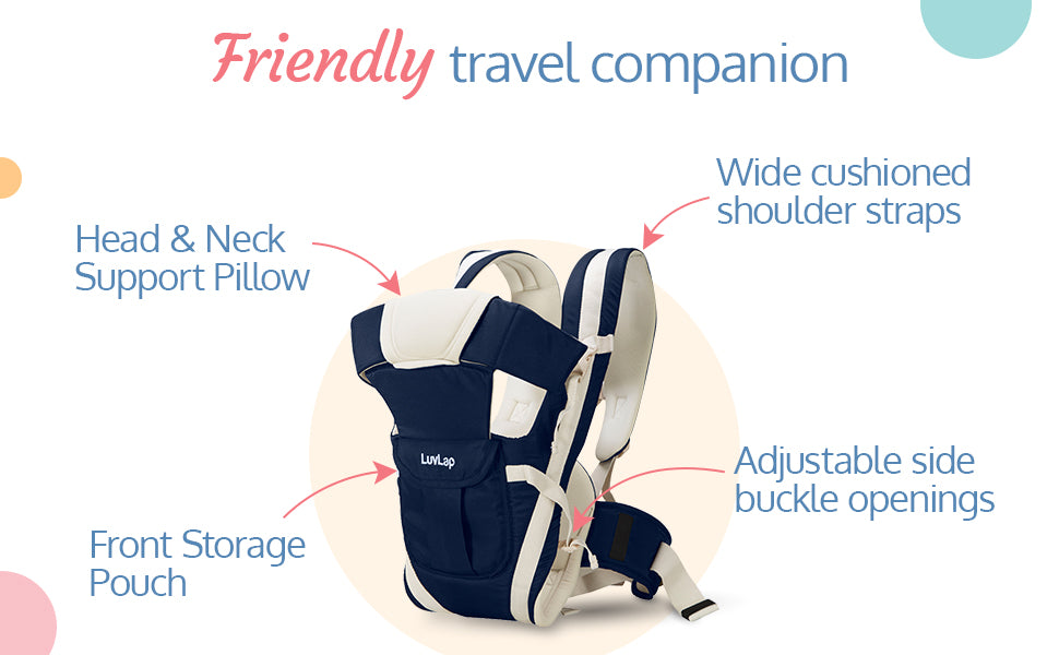 Now take your baby out of the house without any hassle or worries in this convenient LuvLap baby carrier. It is great for your baby to explore the surroundings safely while feeling emotionally secure. Made of premium quality breathable fabric, with multi carrying positions and adjustable belts make sure both baby and parent is most comfortable. Close carrying has been scientifically proven to help your baby grow up to be secure, intelligent, family oriented and happy. So whether it is to do small chores or to meet friends, you can take your baby out with you every time.
