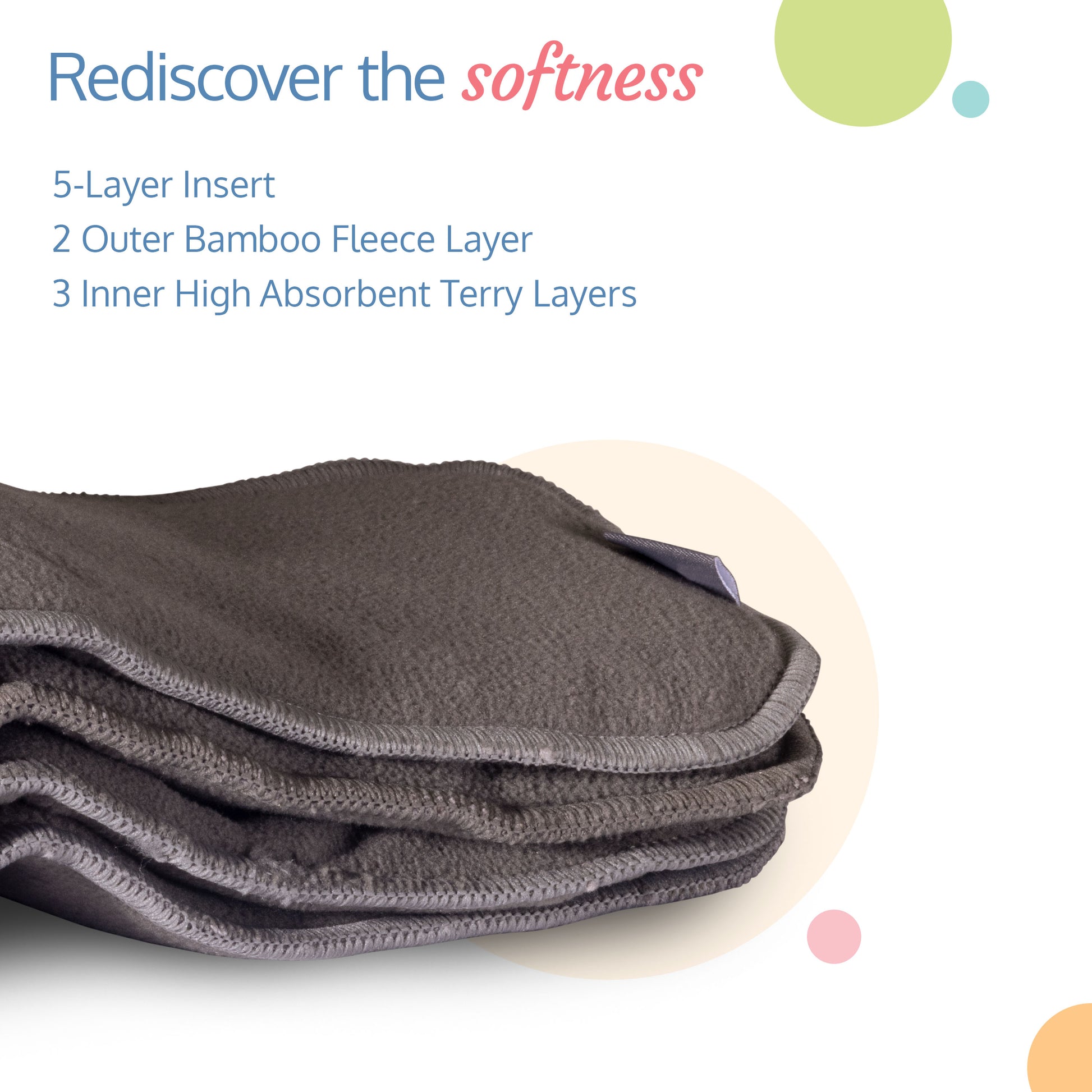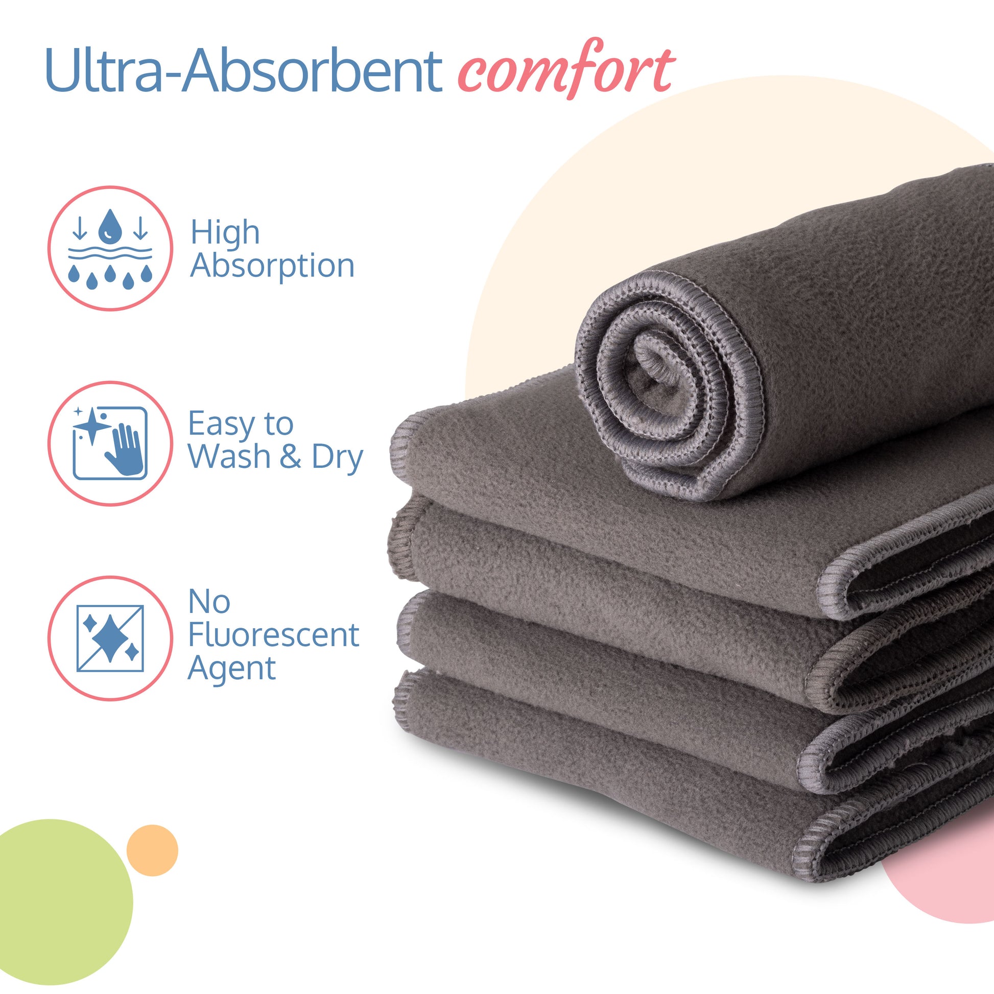 - Better Absorbency with 5 layers – Two layers of soft charcoal bamboo fleece surround three ultra- absorbent microfiber layers that trap up to 10 ounces of liquid