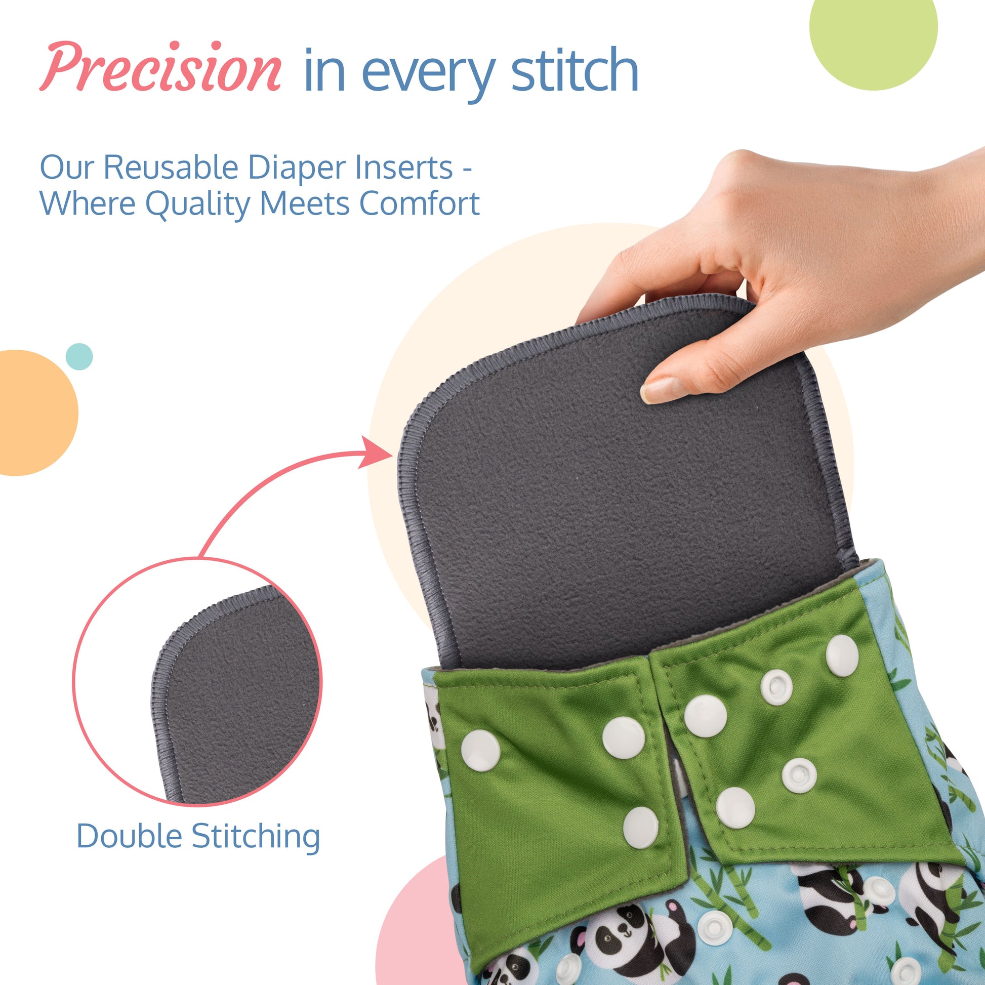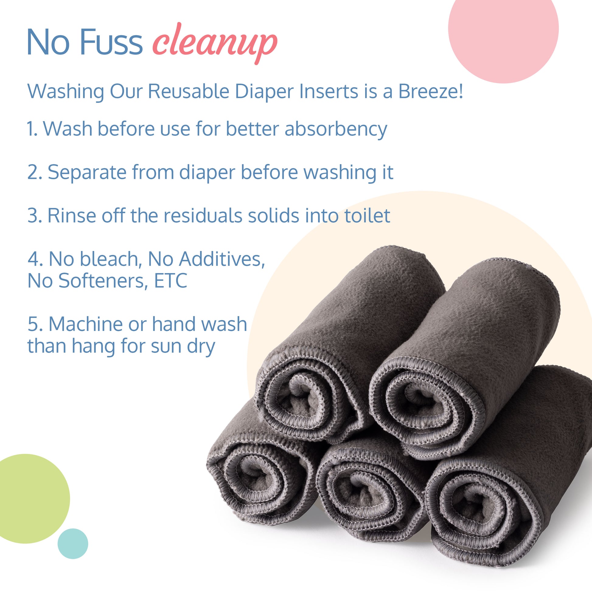 - Economical – These diaper inserts are reusable and fully machine washable, and become softer and more absorbent the more they are washed. Using cloth diapers with inserts is less expensive than disposable diapers, and reduces landfill waste.