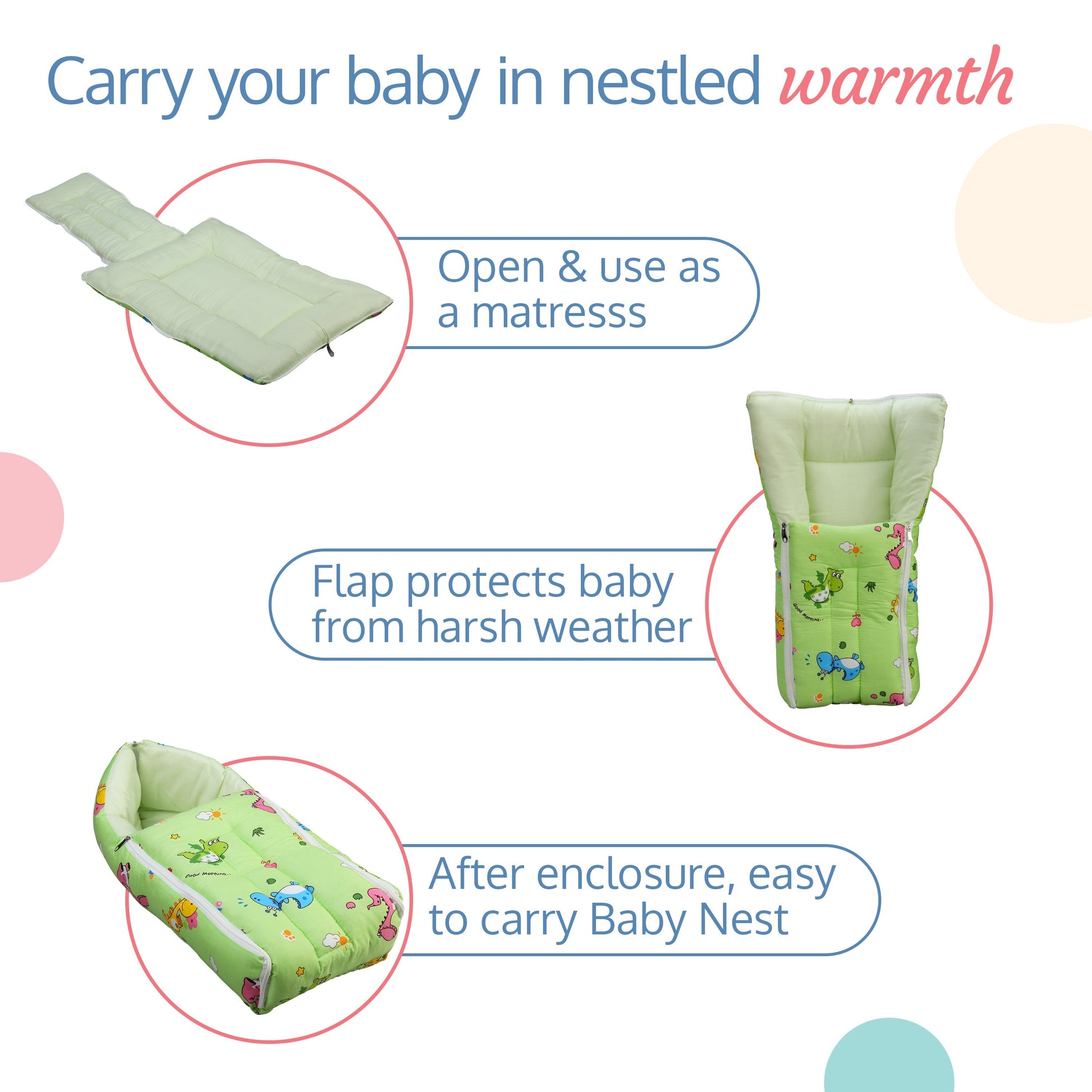 3 in 1 Baby Sleeping Bag and Carry Nest (Dino Print, Light Green)