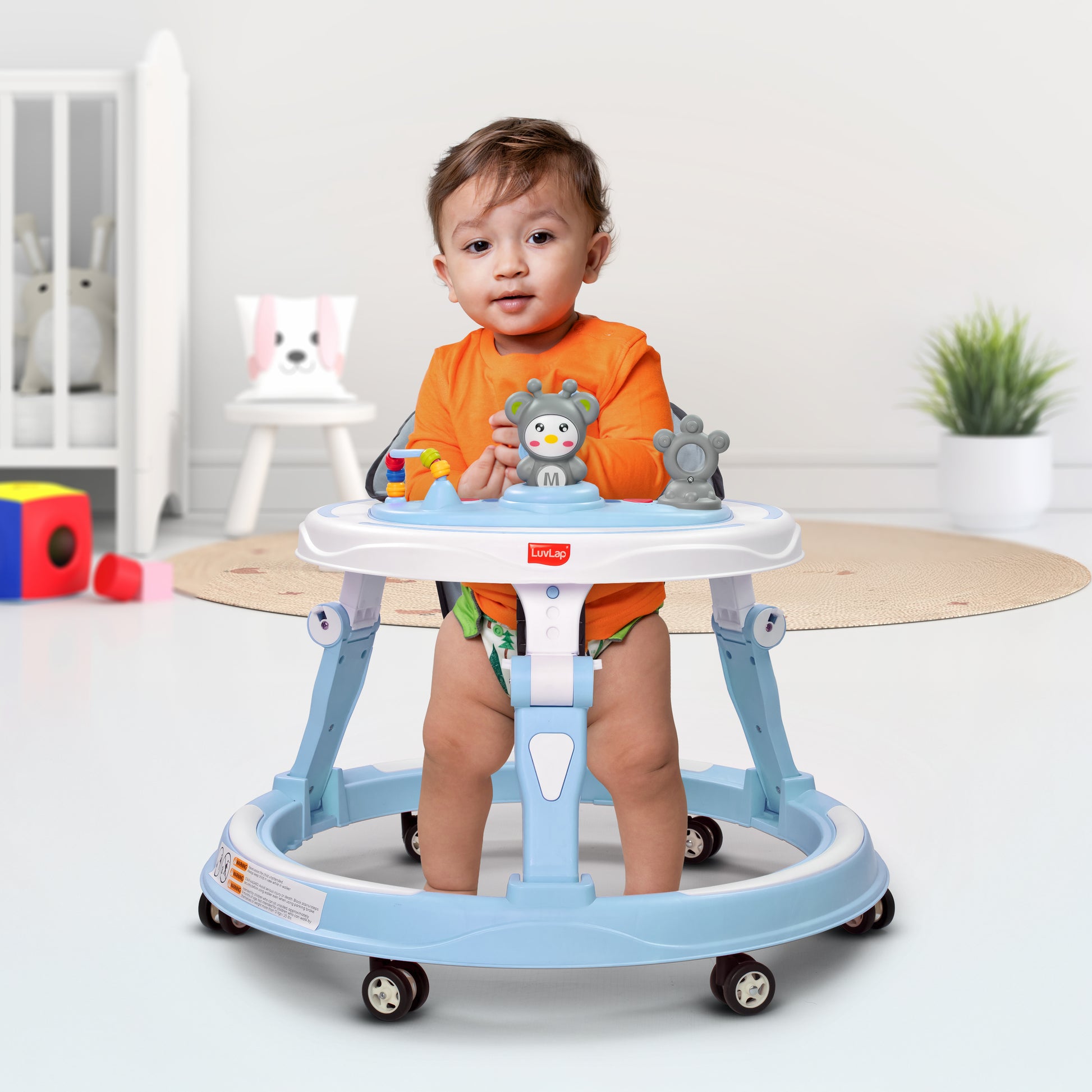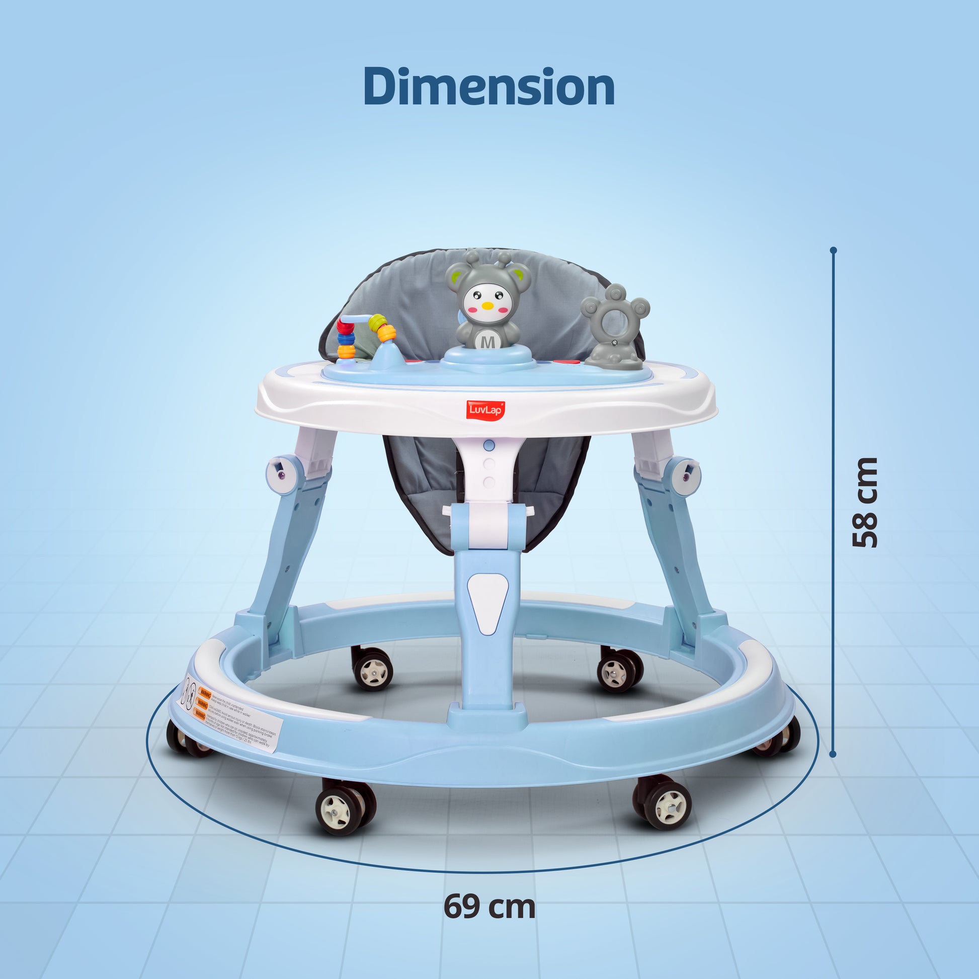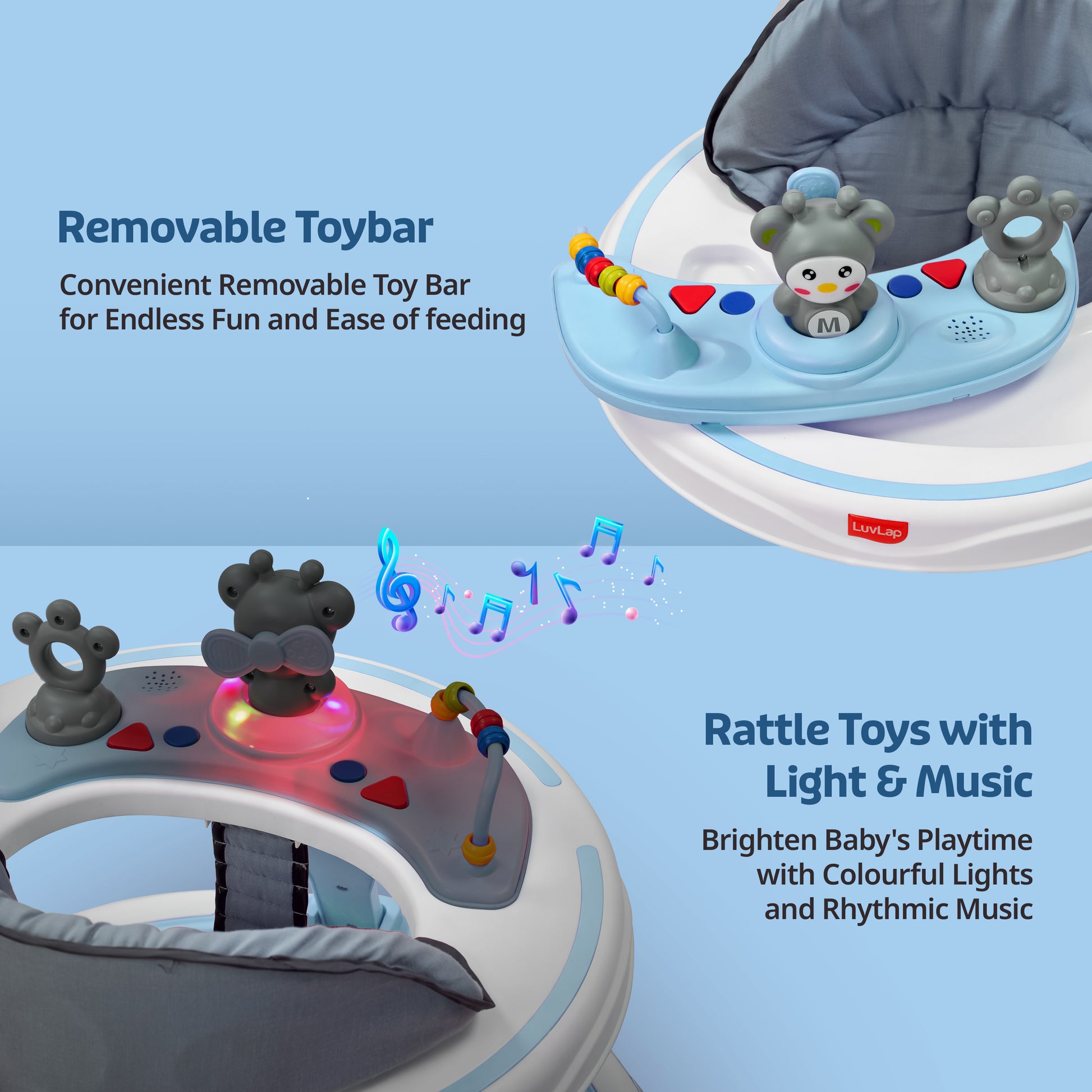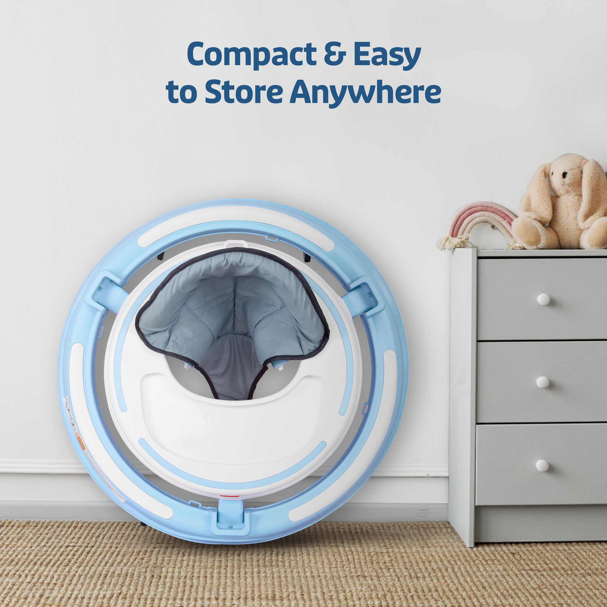 360° Joy Baby Walker for 9+ Months | 3 Level Height Adjustment Walker with Switchable Food & Musical Toy Tray/Advanced Baby Activity Walker, Blue