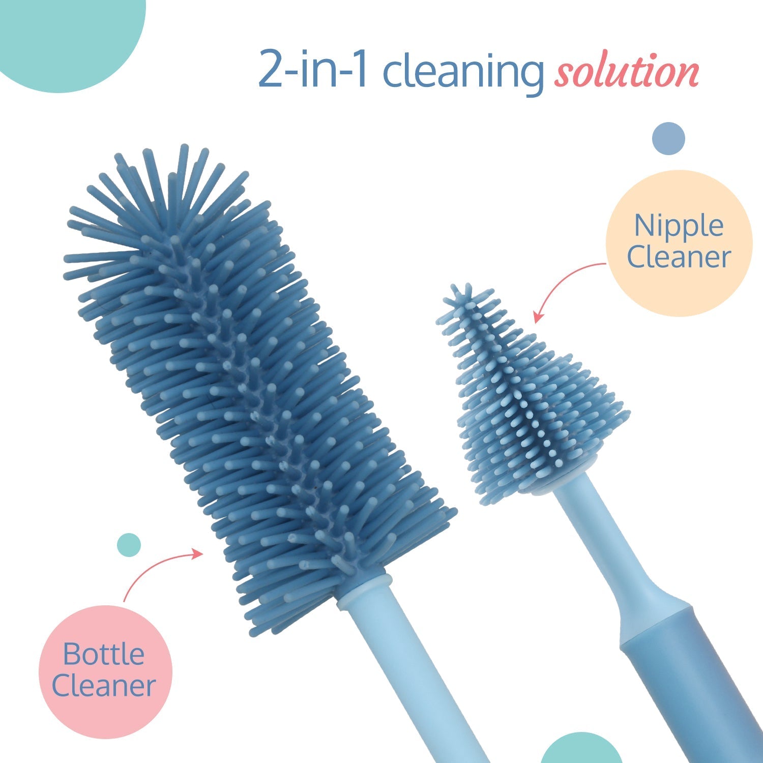 - Scratch Free Cleaning: Head of both bottle & Nipple cleaner is made of Highly flexible Non-Toxic Silicone bristles that reach all corners of bottles & accessories ensuring scratch free safe cleaning