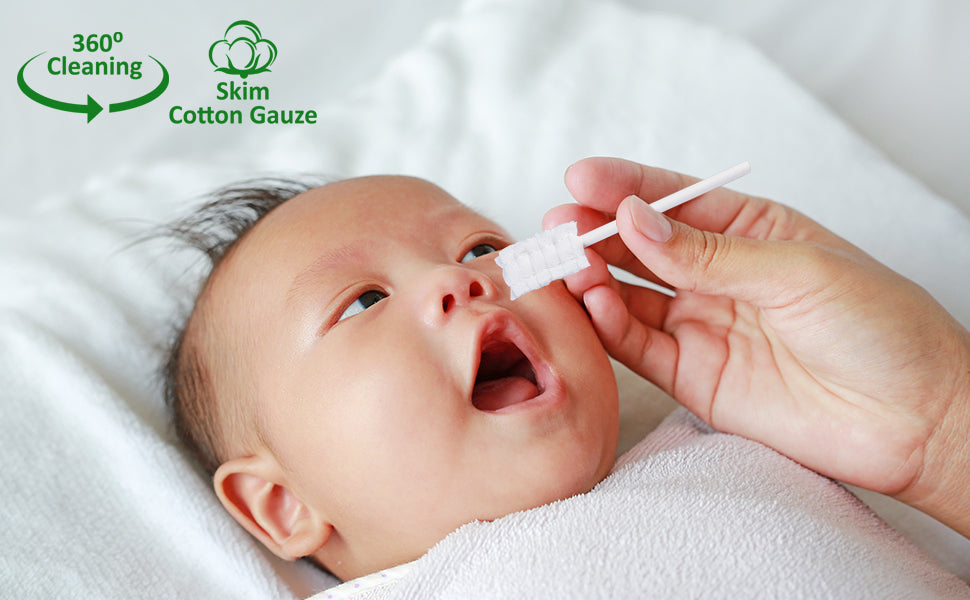 - Safe & Comfortable Material: Made of Soft, absorbent gauze. The paper handle is safe and healthy for babies. Its 3D wave pattern, helps in 360° cleaning of mouth