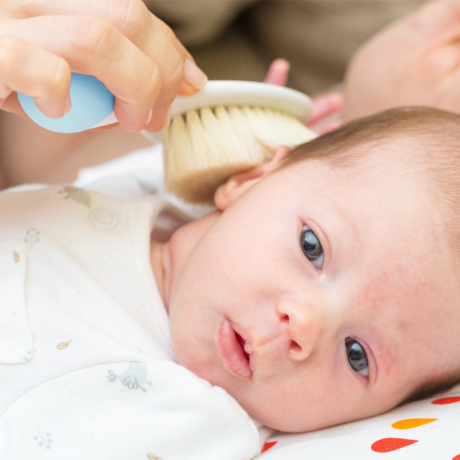 - Rounded ends of comb teeth are gentle on baby's scalp