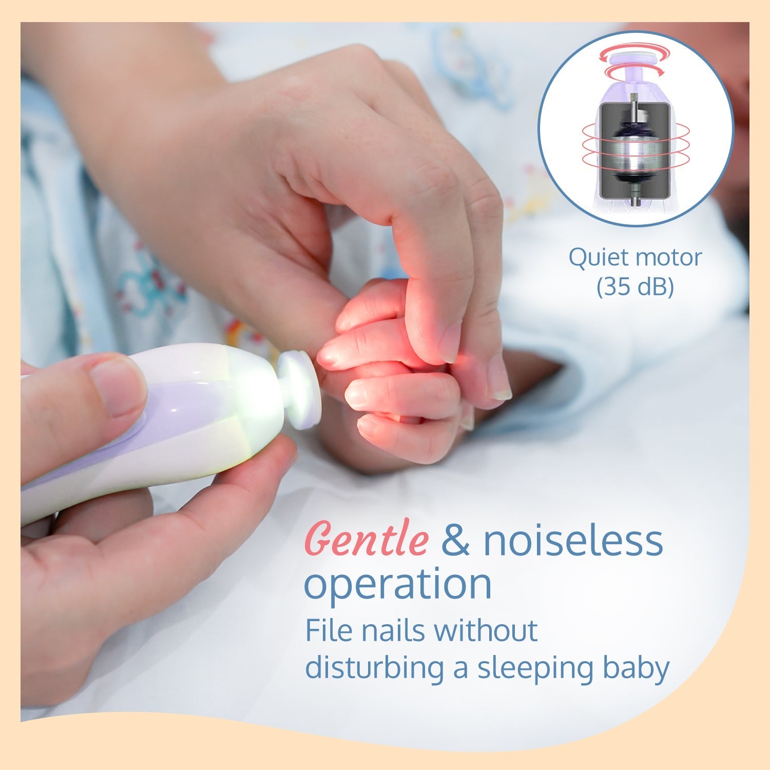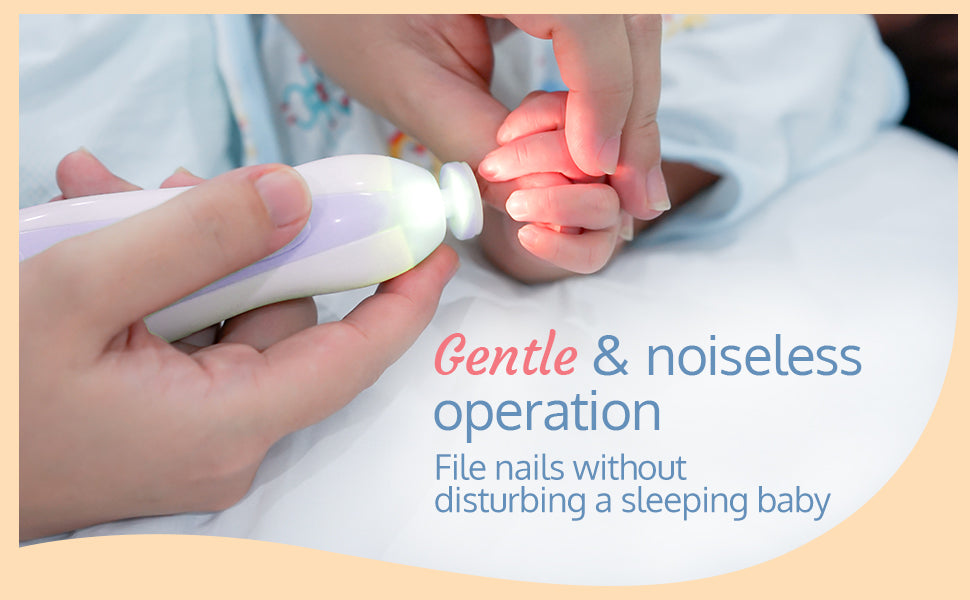 - LED light & Quiet machine: LED light (Glows when switched 'ON') aimed at finger or toe nails for better visibility. Whisper QUIET motor (<60db), doesn’t wake your baby up