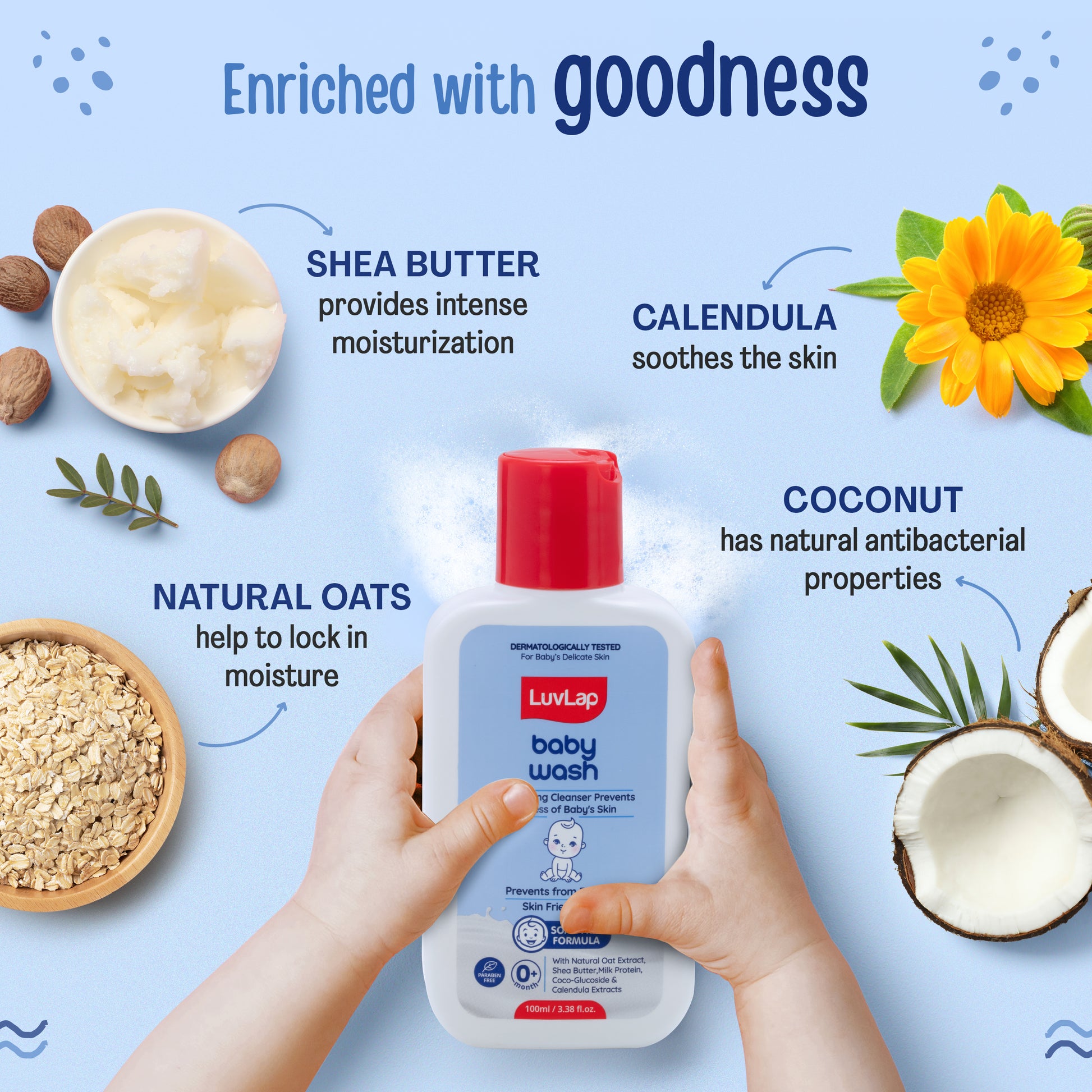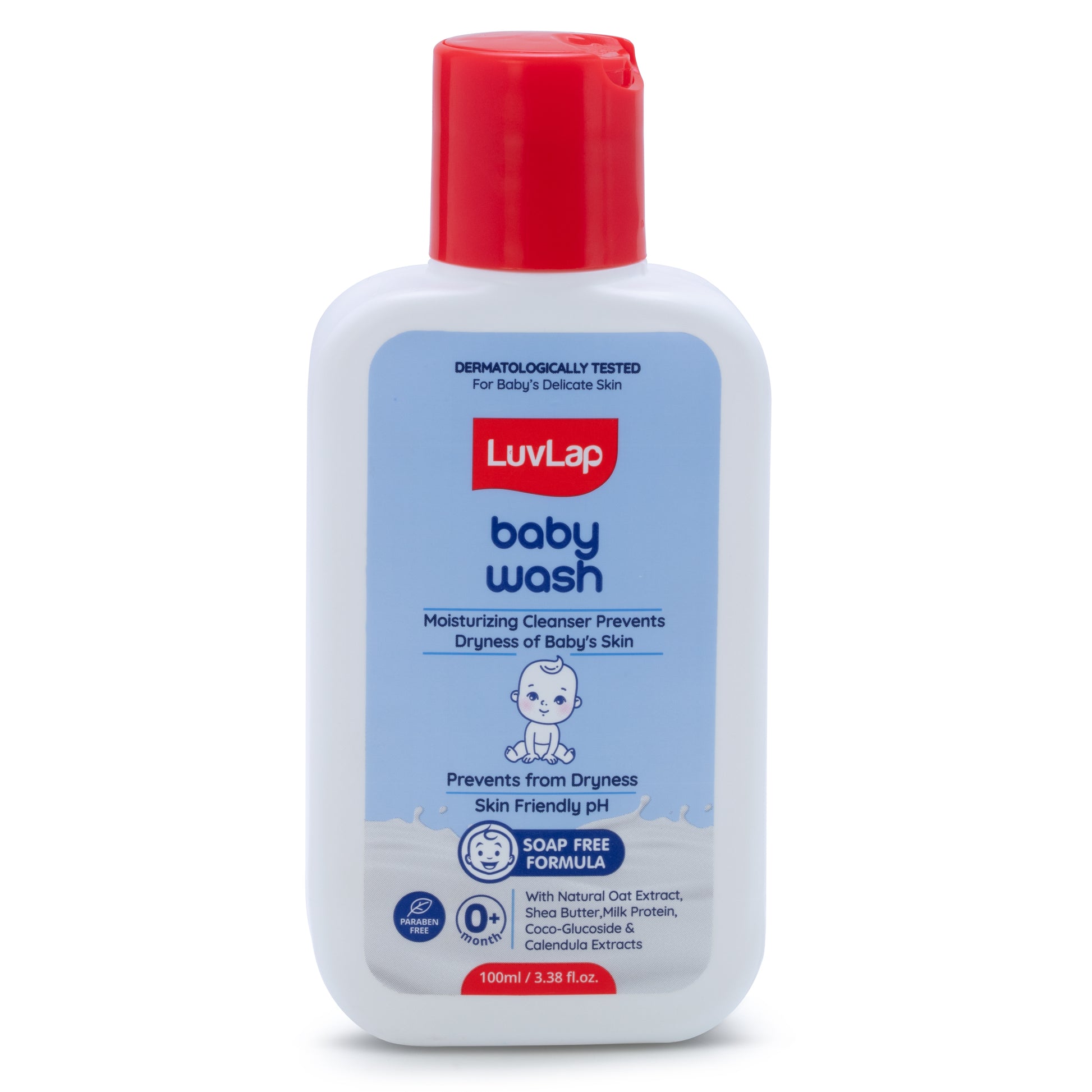 LuvLap Baby Wash - 100ml, with Milk Protein, Oatmeal, Shea Butter and Vitamin E, Soap Free, Baby Wash for Baby Bath, Natural, pH Balanced & Paraben Free, Dermatologically Tested