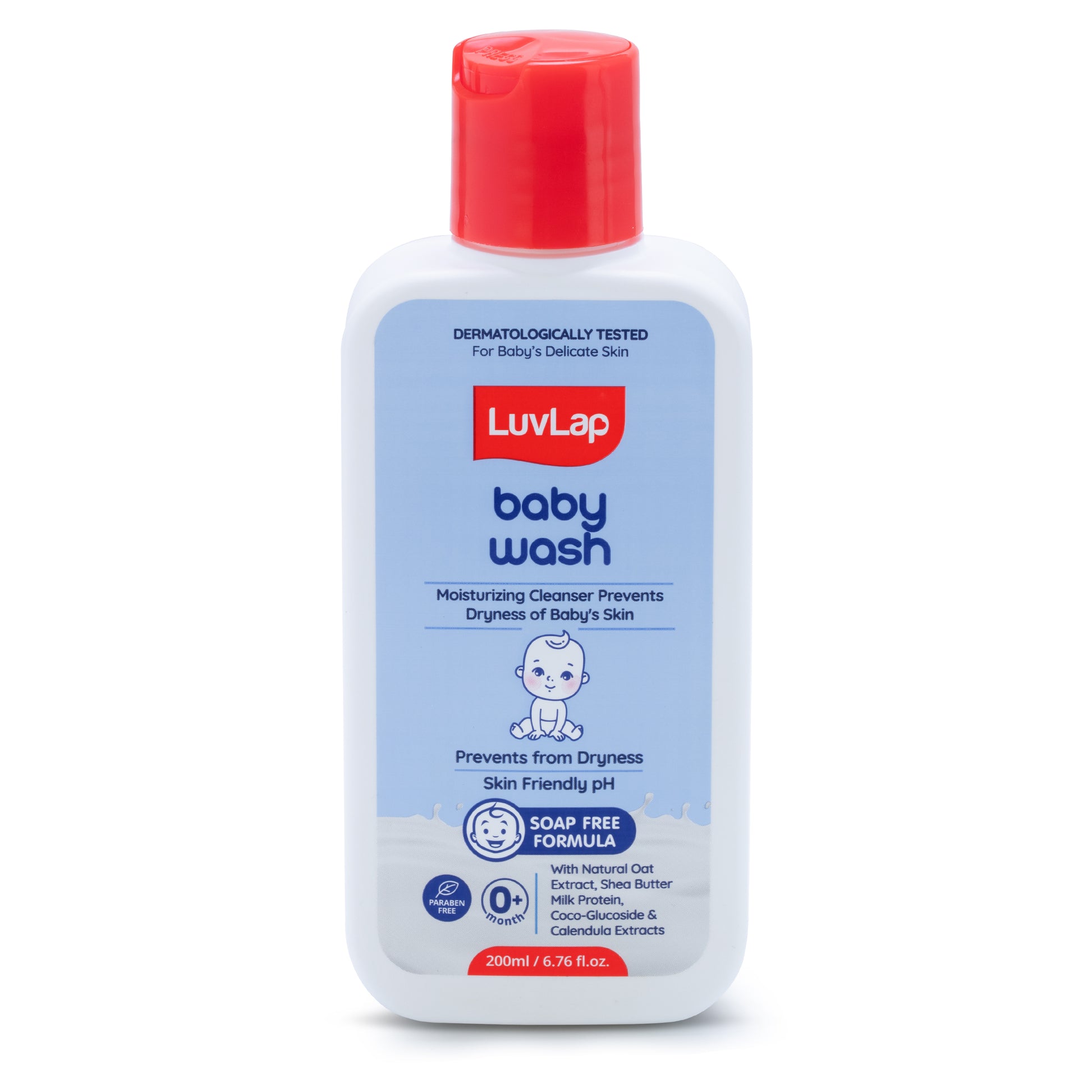 LuvLap Baby Wash - 200ml, with Milk Protein, Oatmeal, Shea Butter and Vitamin E, Soap Free, Baby Wash for Baby Bath, Natural, pH Balanced & Paraben Free, Dermatologically Tested