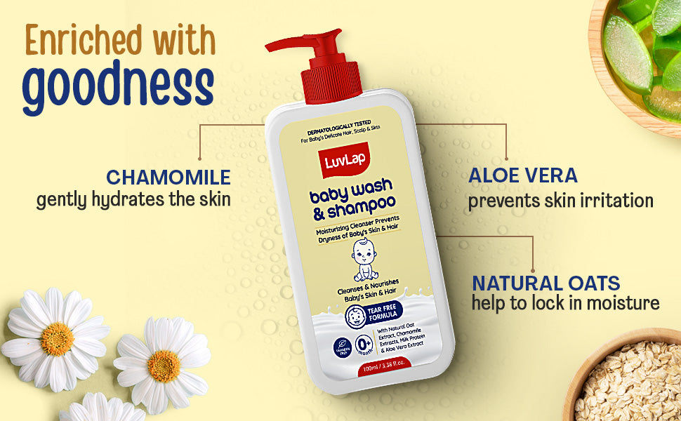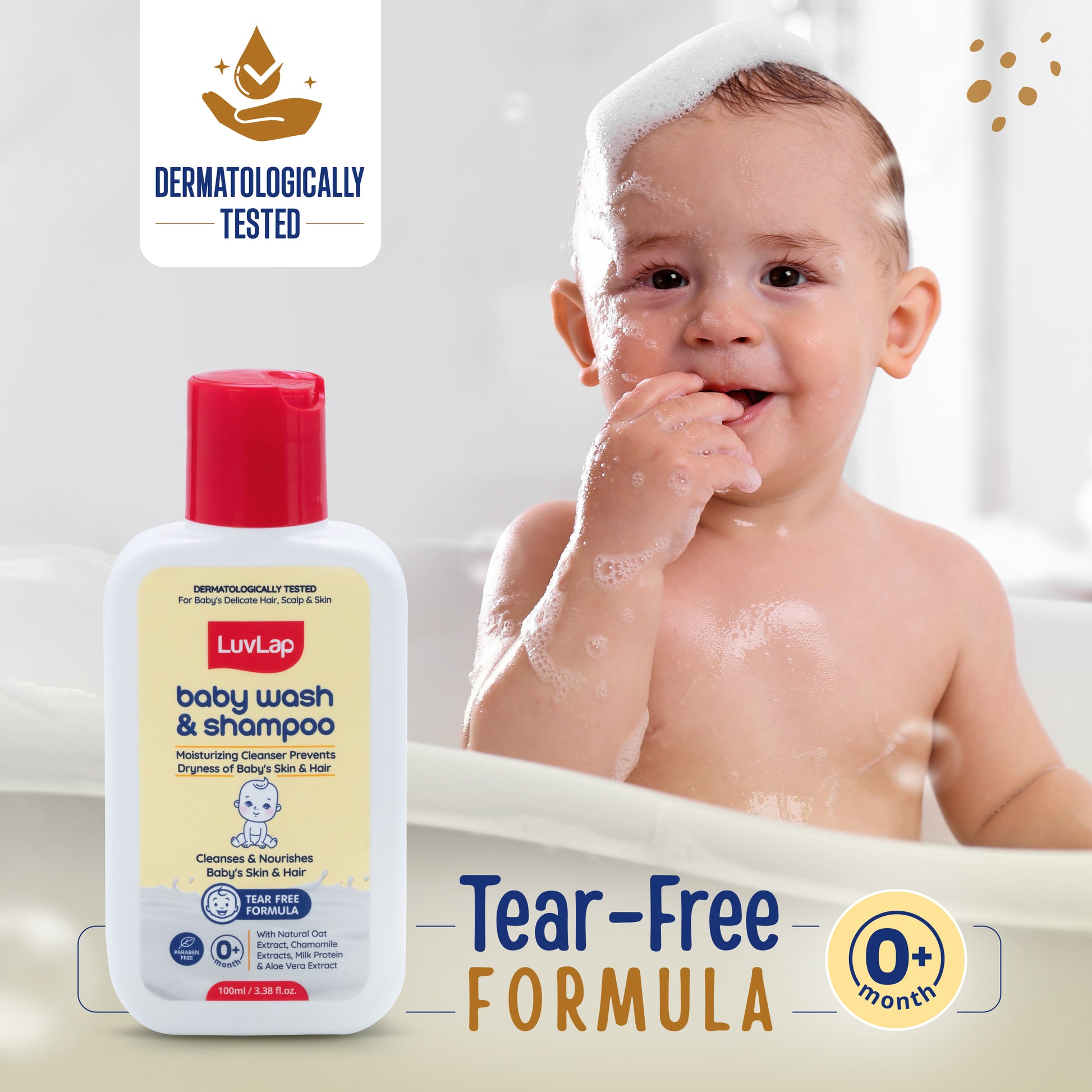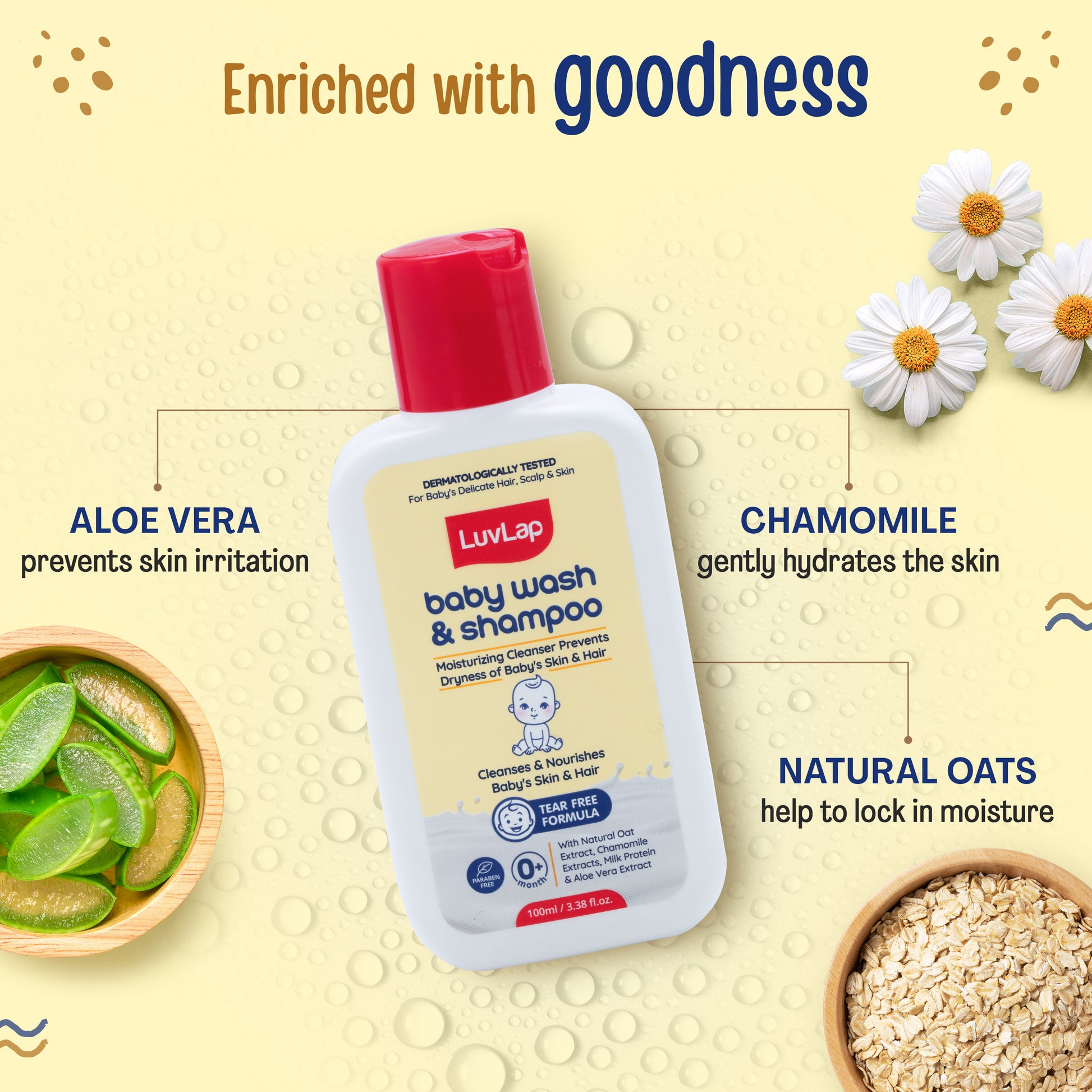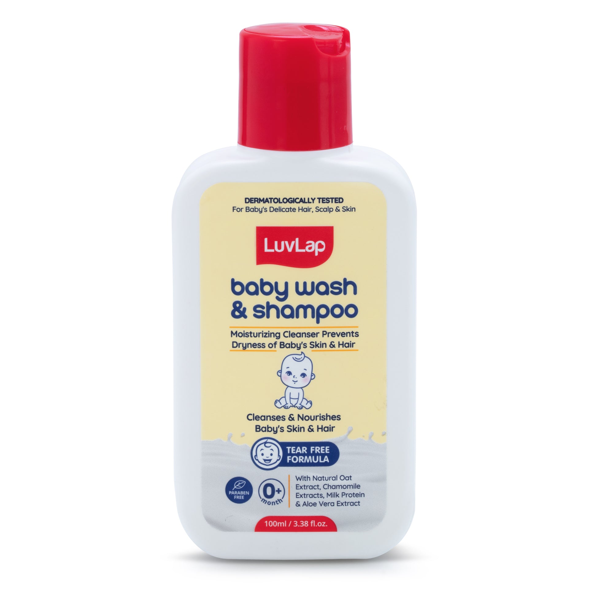LuvLap Baby Wash & Shampoo - 100ml with Chamomile, Milk Protein, Oatmeal & Shea Butter, Paraben Free, Tear Free, Soap Free, Rich Moisturised Skin & Soft Hair, Baby Body Wash, Dermatologically Tested